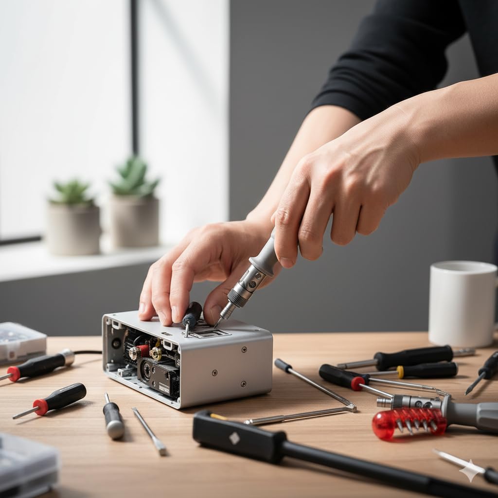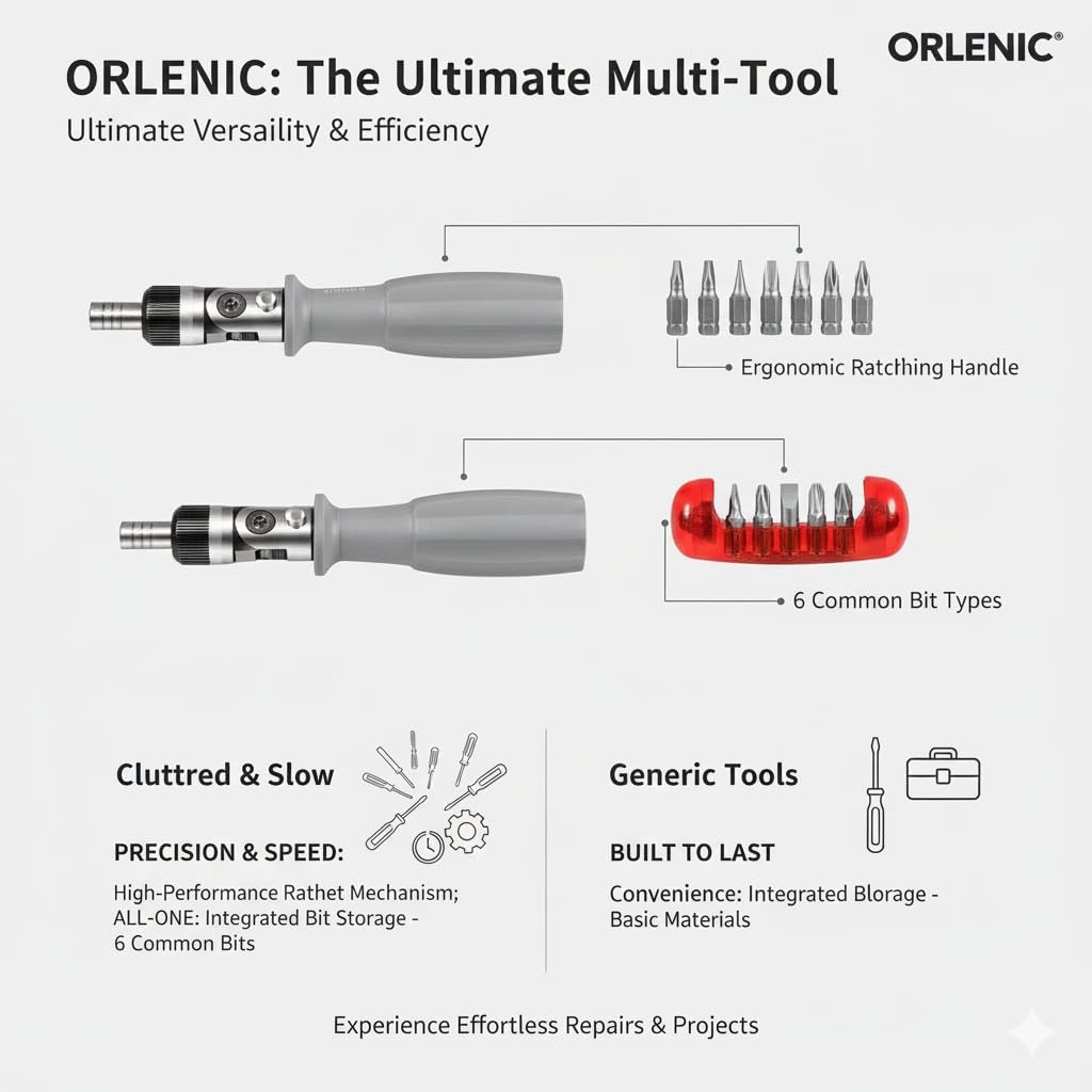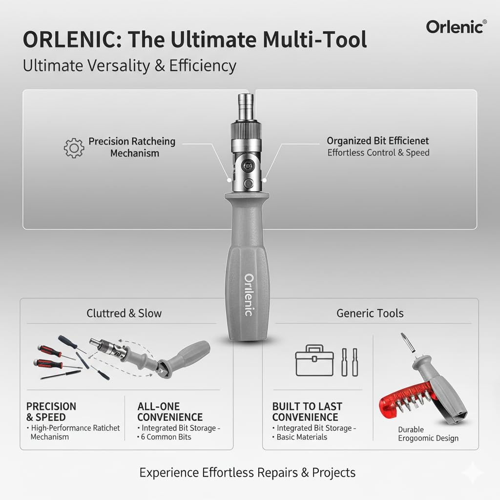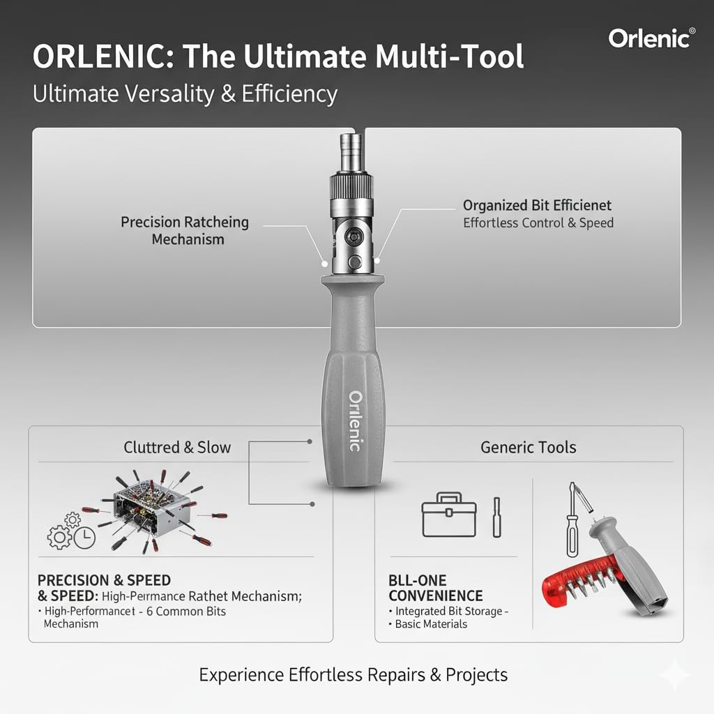 All-in-One 10 Bit Ratchet Screwdriver for Easy Repairs – Comes with 10 interchangeable magnetic screwdriver heads stored inside the handle, eliminating the need to carry multiple tools and making every repair job more efficient.