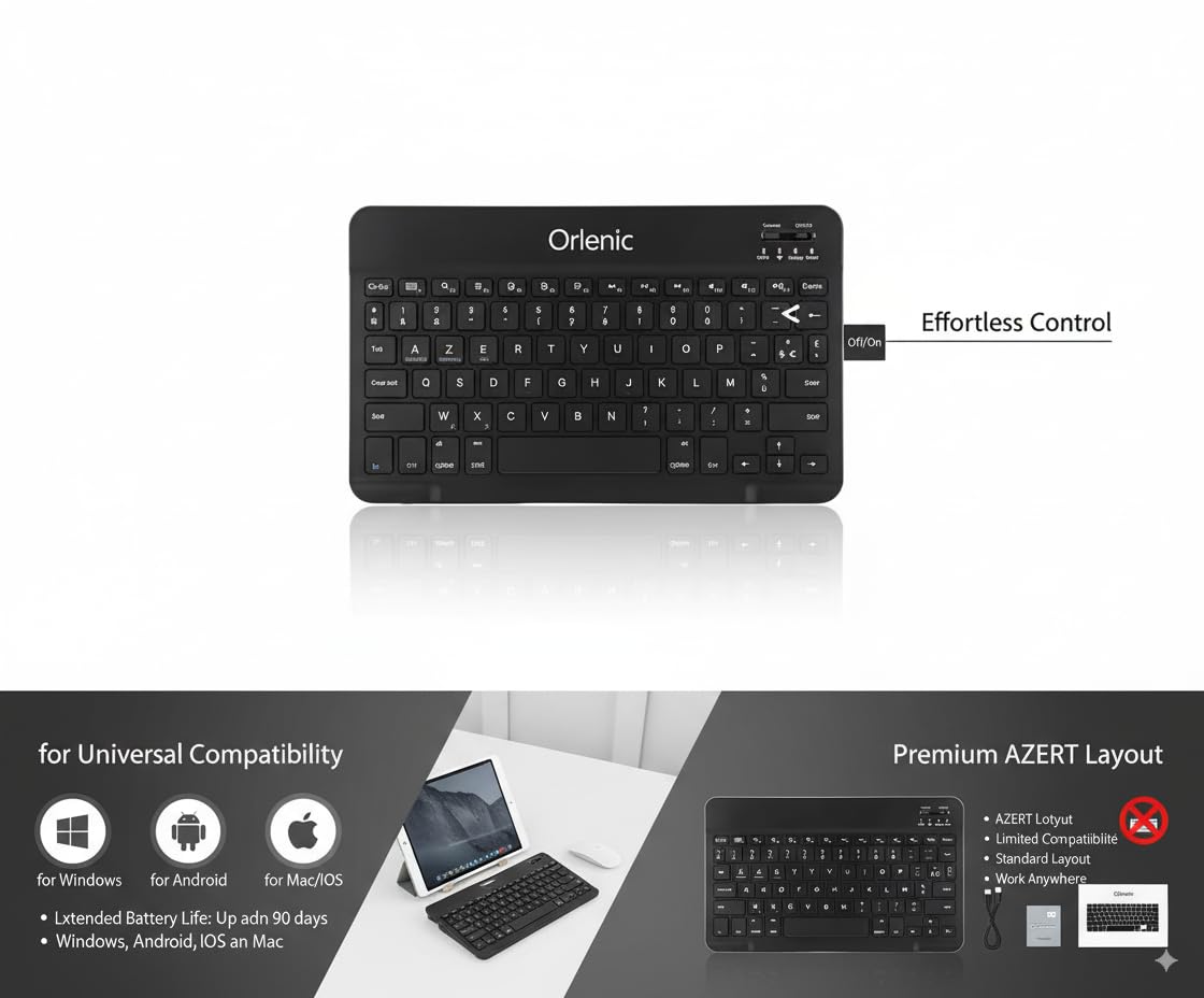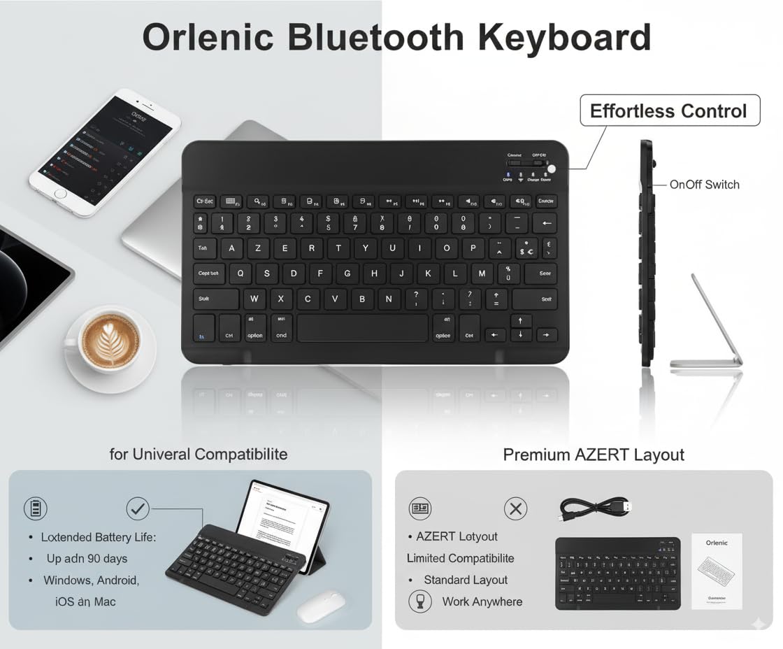 Expanded 10 Inch AZERTY Layout – Features a widened French keyboard layout with more keys and larger spacing than standard 7-inch models. Designed for faster typing speed, improved accuracy, and greater comfort during long typing sessions.