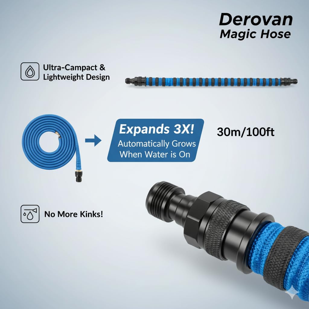 Auto-Expanding & Retractable – Instantly grows to 3× its original length under water pressure and shrinks back for compact storage. Makes watering the garden or washing your car effortless.