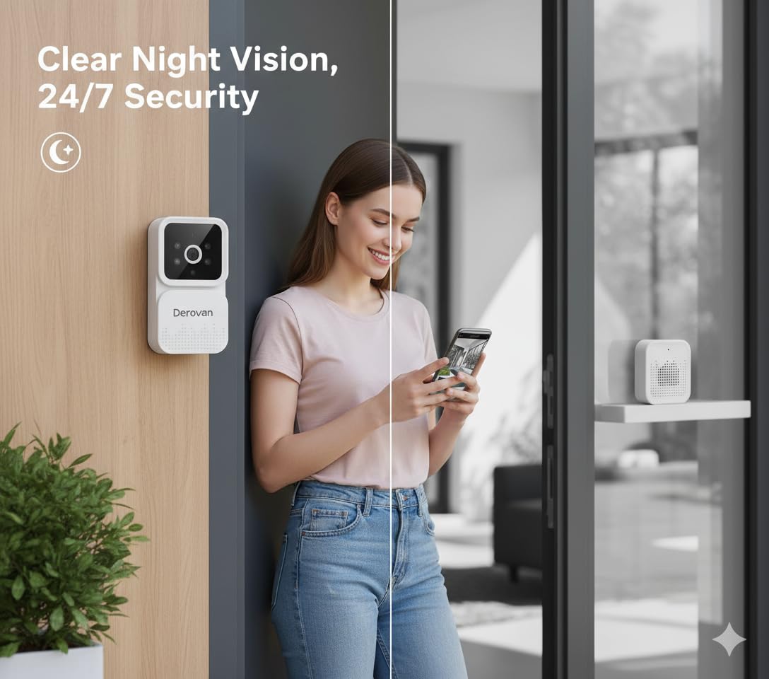 Ultra‑clear 1080P HD Visuals & Enhanced Night View – Crisp, detailed daytime video and powerful infrared night vision for round‑the‑clock home monitoring.