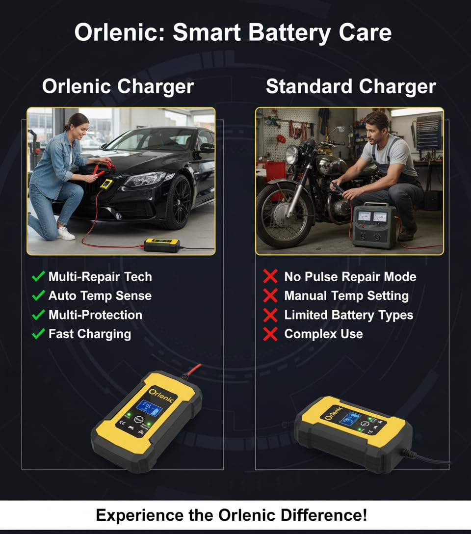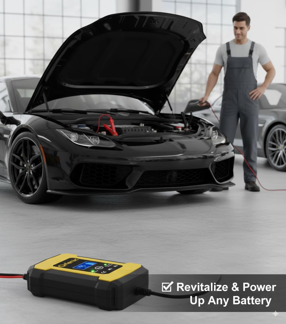 【Smart 12V Charger with Pulse Repair】 Advanced pulse repair technology helps restore lost battery performance, desulfate aging batteries, and extend overall battery life. Designed for 12V lead-acid batteries, this intelligent charger ensures safe charging and efficient power delivery for cars, motorcycles, trucks, SUVs, boats, and more.