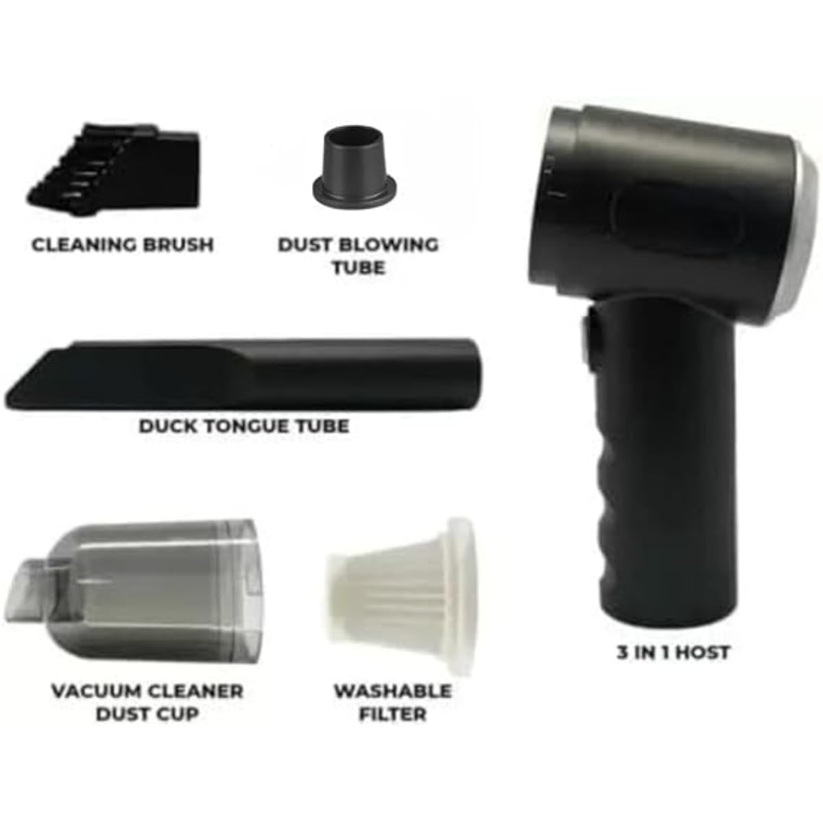 2-in-1 Car Vacuum Cleaner with Blower: This powerful mini cleaning machine combines a vacuum and blower in one compact design, effortlessly tackling both wet and dry messes. With its high suction power and versatile functionality, it ensures a thorough clean every time.
