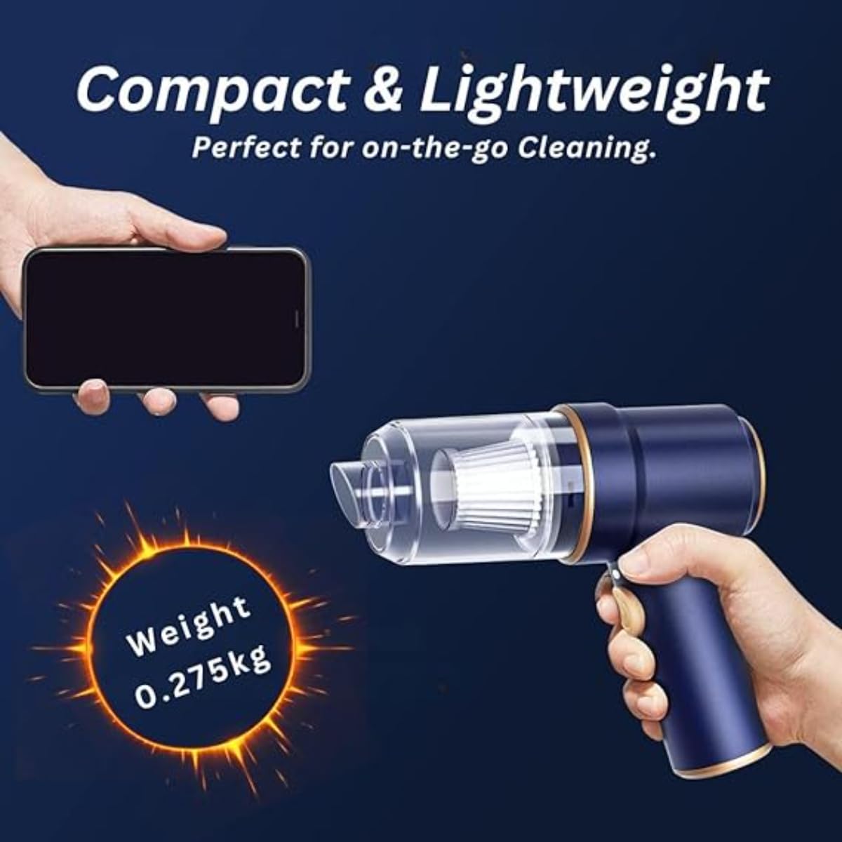 2-in-1 Car Vacuum Cleaner with Blower, Wireless, Rechargeable, Portable, Powerful Mini Handheld Vacuum, High Suction for Wet/Dry Cleaning,Quiet Operation, USB-C Rechargeable,Ideal for Car, Hom