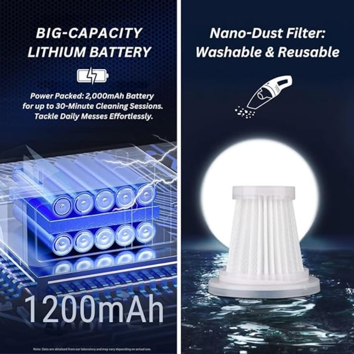 Quiet Yet Powerful Suction: Experience effective cleaning without the noise. This handheld vacuum cleaner provides powerful suction to remove dust, dirt, and debris while operating quietly. Perfect for use in any environment without causing disturbance.