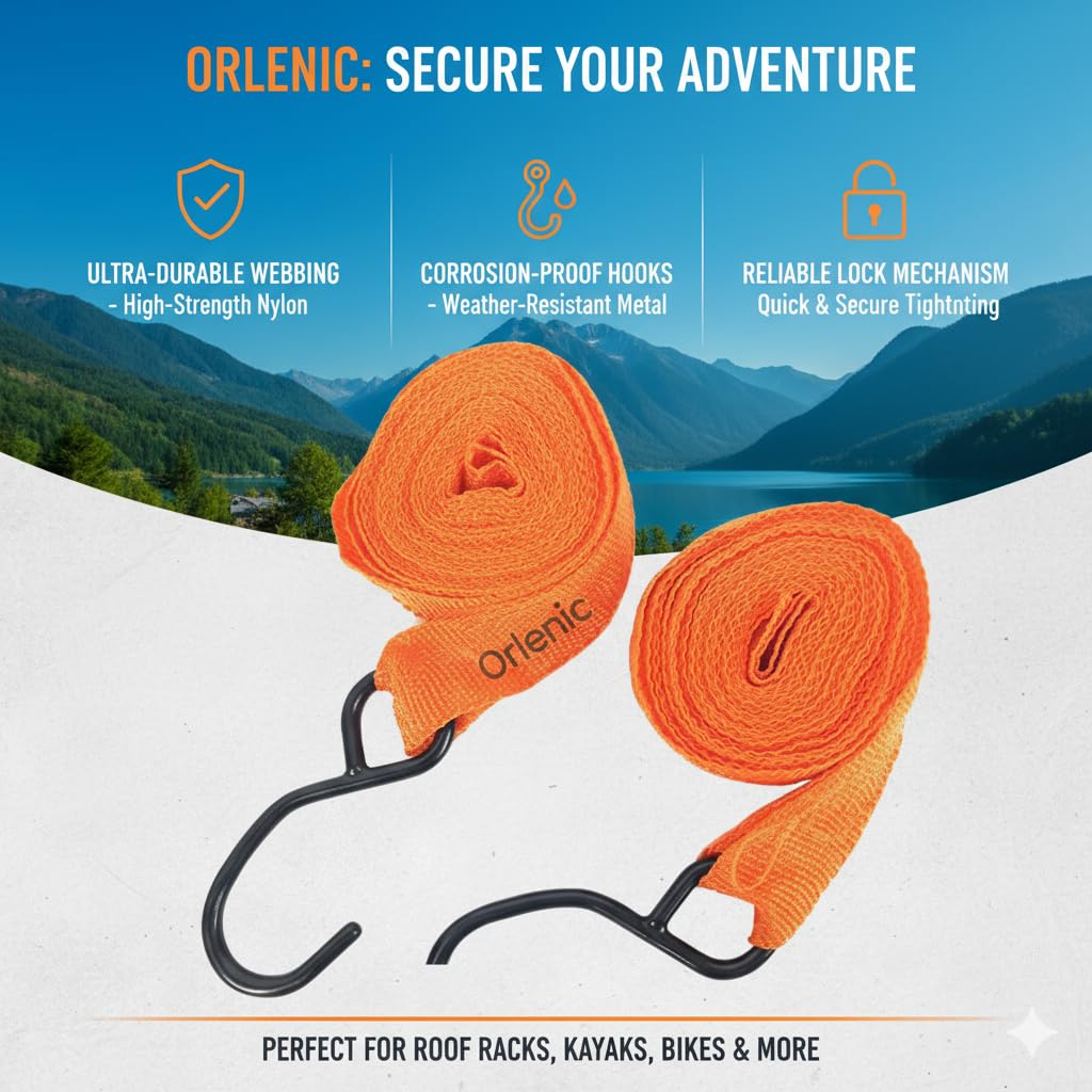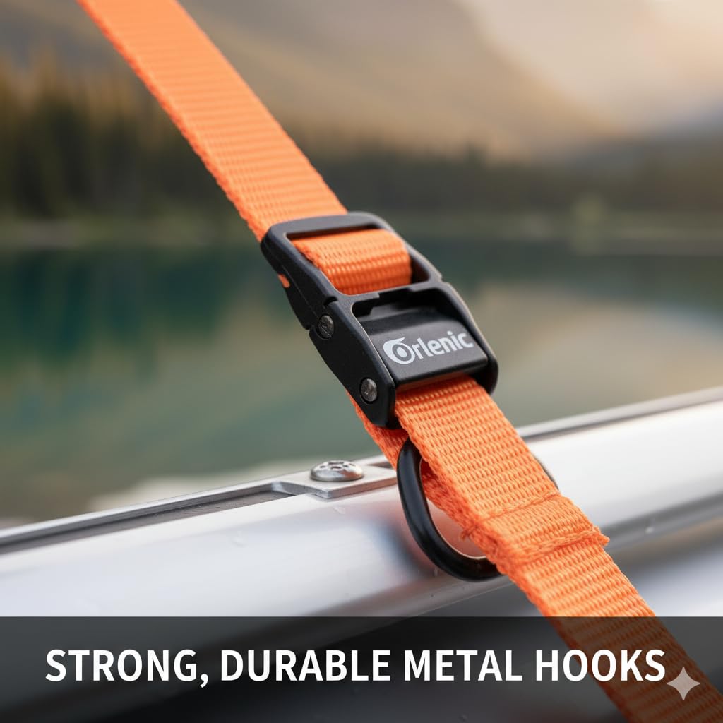 Heavy-Duty Metal Construction – Crafted from durable metal S hooks and high-strength ratchet buckle, these tie-down straps provide secure fastening, ensuring your cargo stays in place during transportation without slipping or loosening.