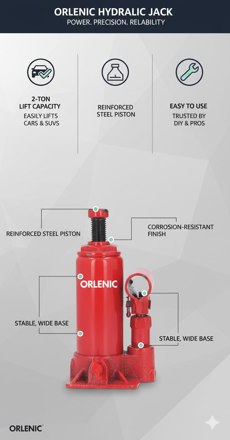 This powerful hydraulic jack supports up to 2 tons, making it ideal for lifting vehicles and industrial machinery safely and efficiently. Its robust design ensures reliable performance for both residential and commercial use.