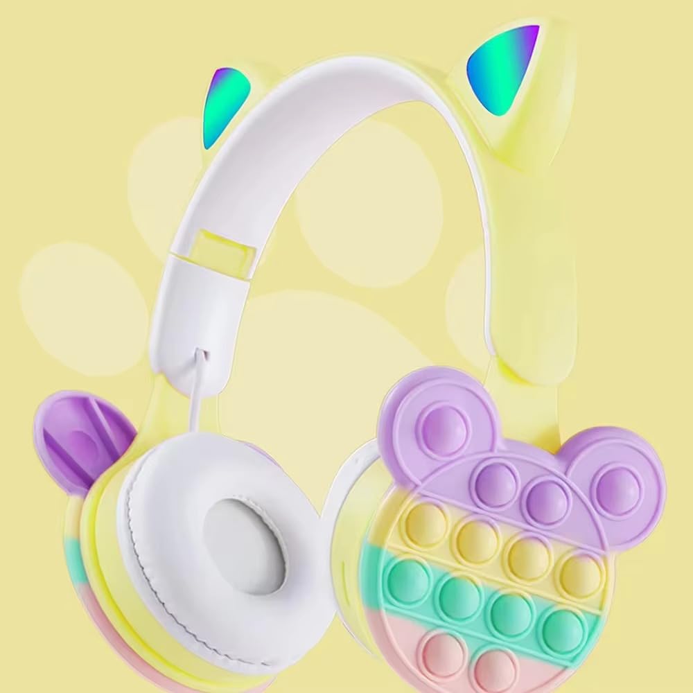 2024 Light-Up Wireless Headphones for Kids – Bubble Decompression Ear Cups, Bluetooth Headset with Cat Ears, Rainbow LED Lights, Foldable & Adjustable Design for School, Travel, Gaming, or Gifting