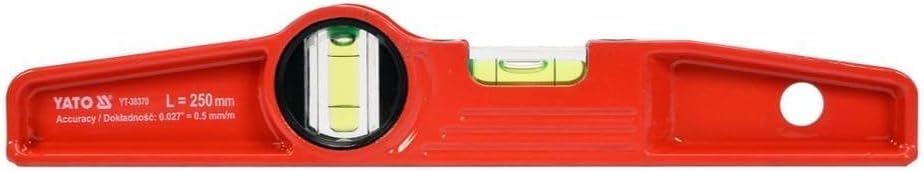 The Derovan 250mm spirit level features two high-visibility acrylic vials for horizontal and vertical measurements, delivering professional-grade accuracy of ±0.5mm/m — ideal for construction, woodworking, and alignment tasks.