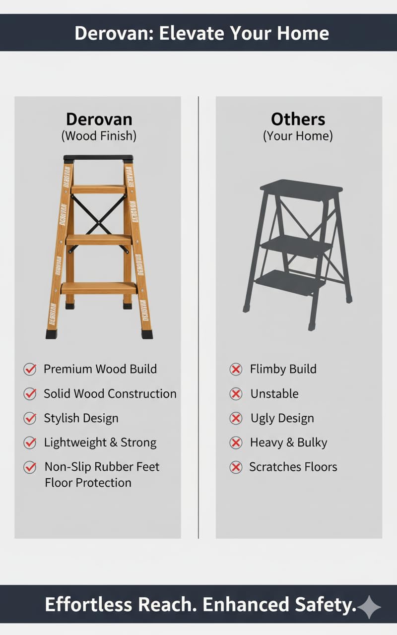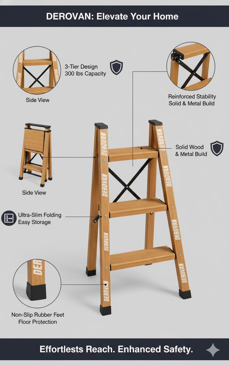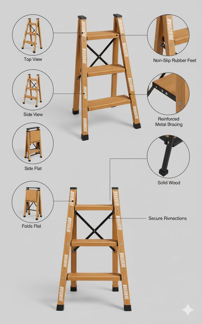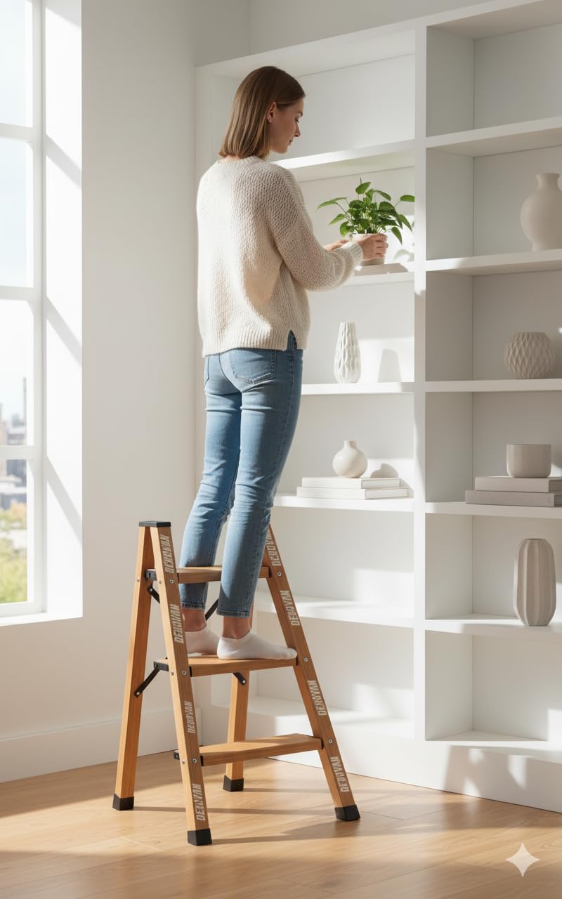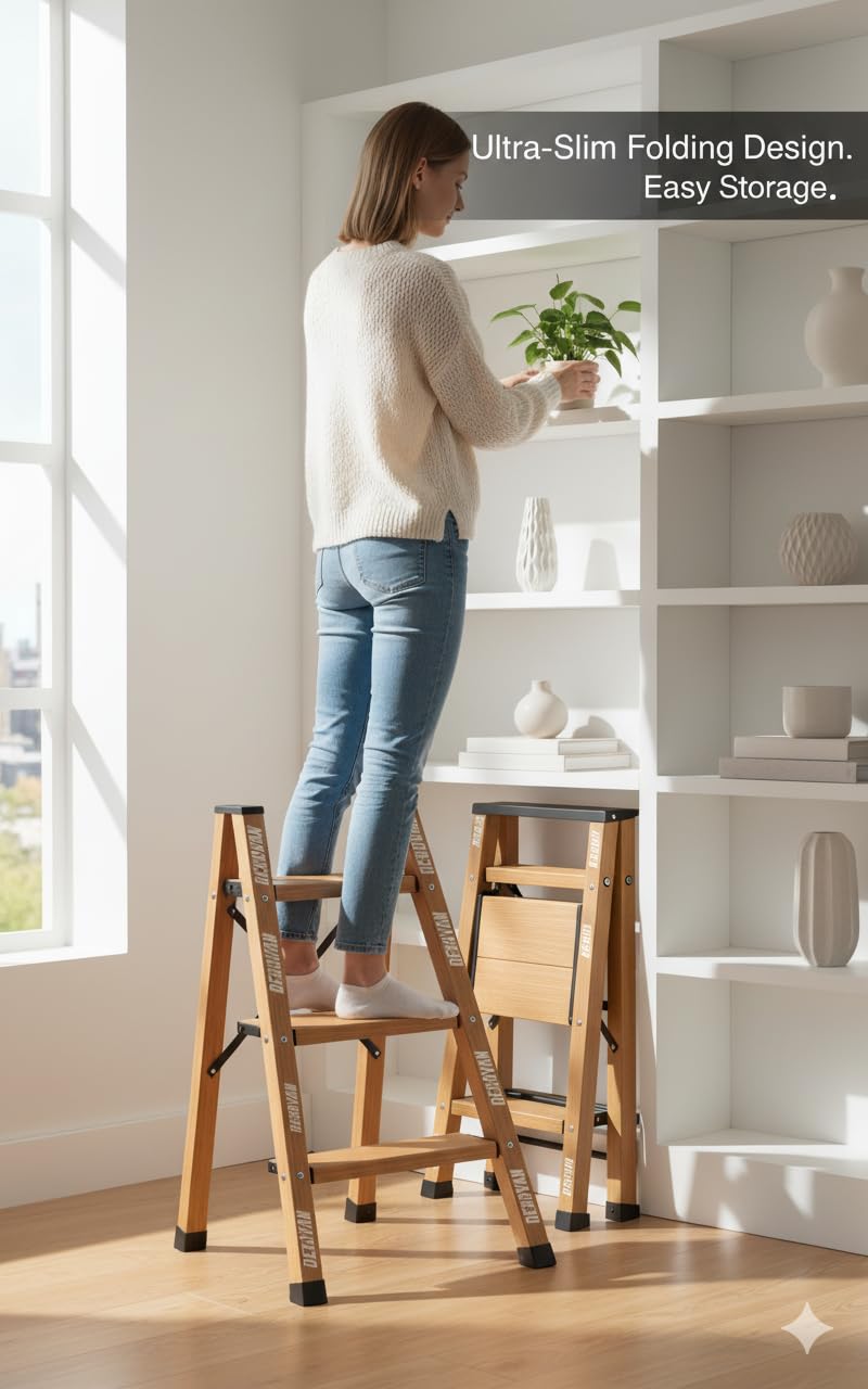Stylish & Multi‑Purpose – Suitable for use as a ladder, stool, or display shelf; fits kitchens, living spaces, offices, pets, and more.