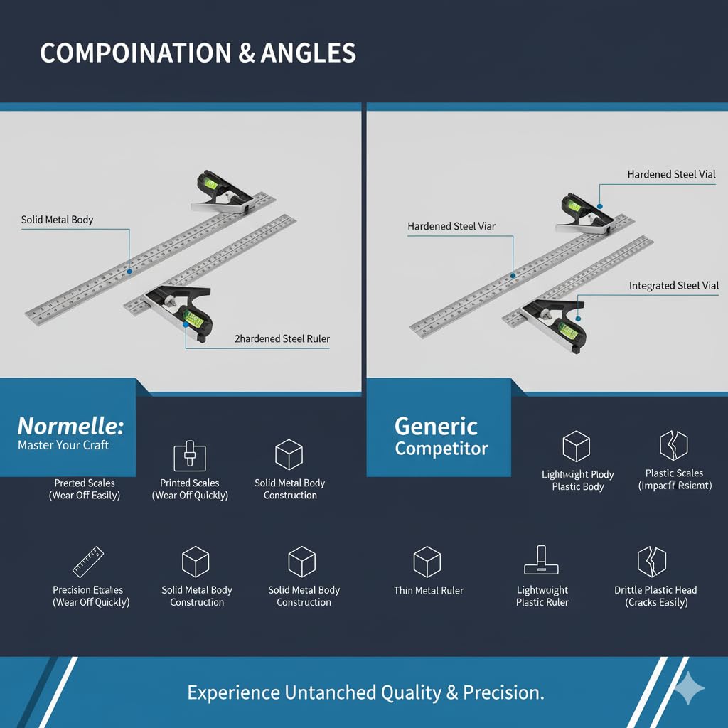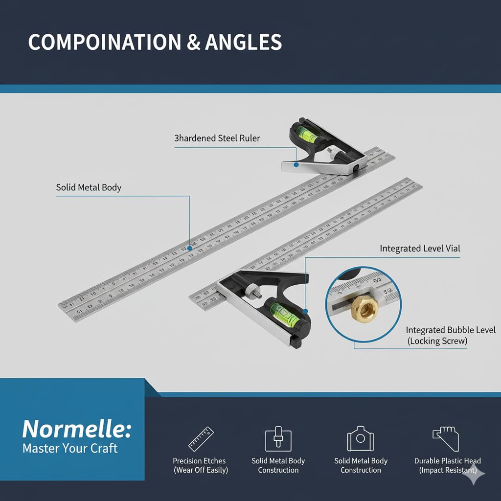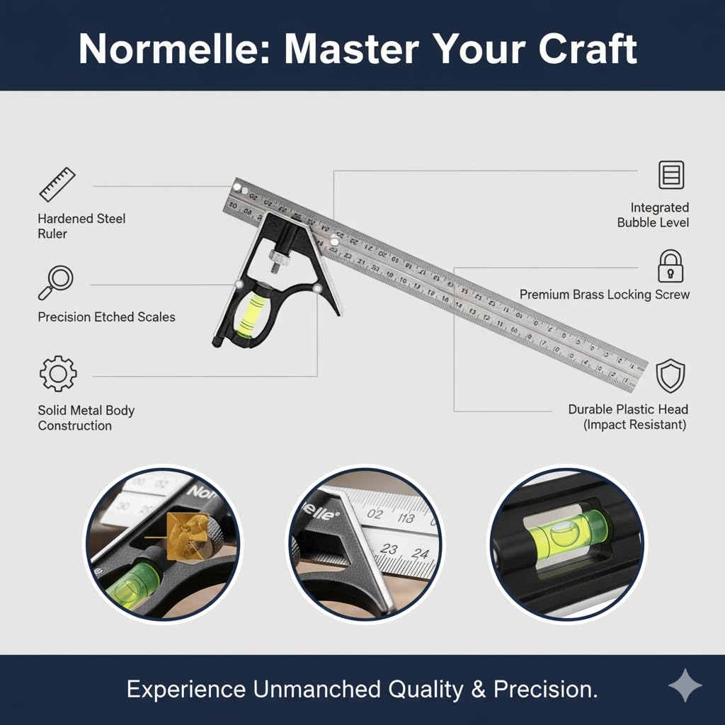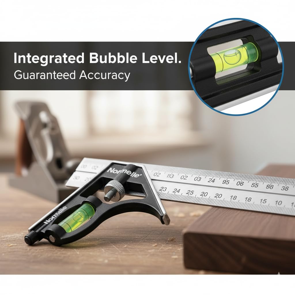 Precision Adjustable Combination Square: Designed for accurate 45° and 90° angle measurement, this 300mm ruler provides precise layout and marking for woodworking, carpentry, metalworking, and DIY projects.