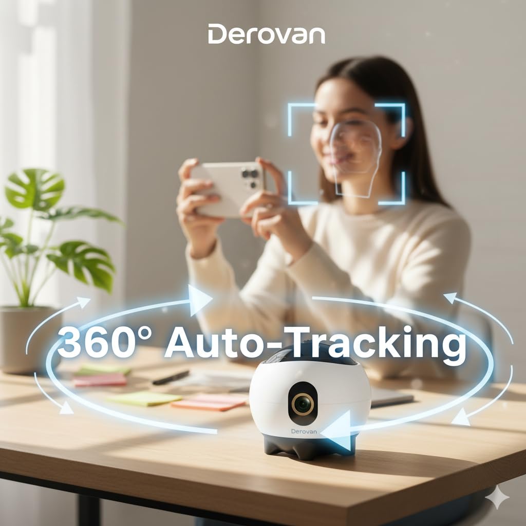 Advanced AI Face Tracking – Built-in HD camera and AI recognition automatically follow one subject within 1–5 m, ensuring you stay in frame—no app or input required.