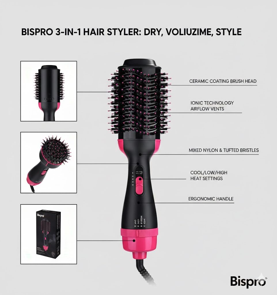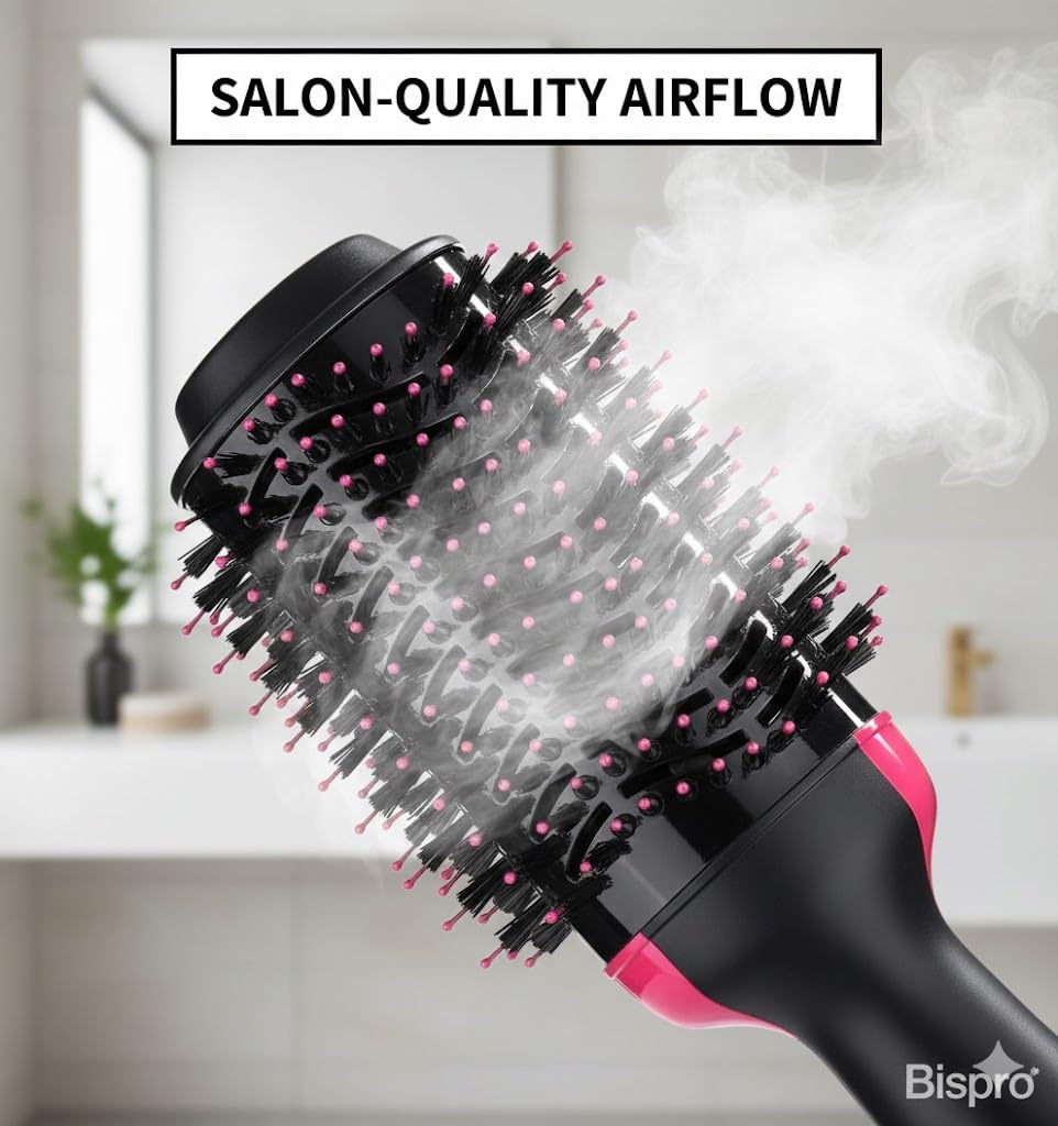 Safe & Travel-Friendly – Built with overheat protection and durable bristles for safe everyday use. Compact, lightweight, and dual-voltage ready for worldwide styling convenience