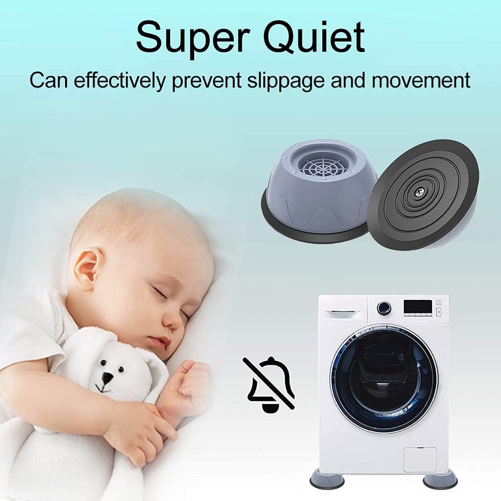 4 Pack Anti-Vibration Pads for Washing Machine, Washing Machine Foot Pads, Shock Absorbing Stabilizer Feet,Washing Machine Stand to Prevent Shifting, Grey and Black,