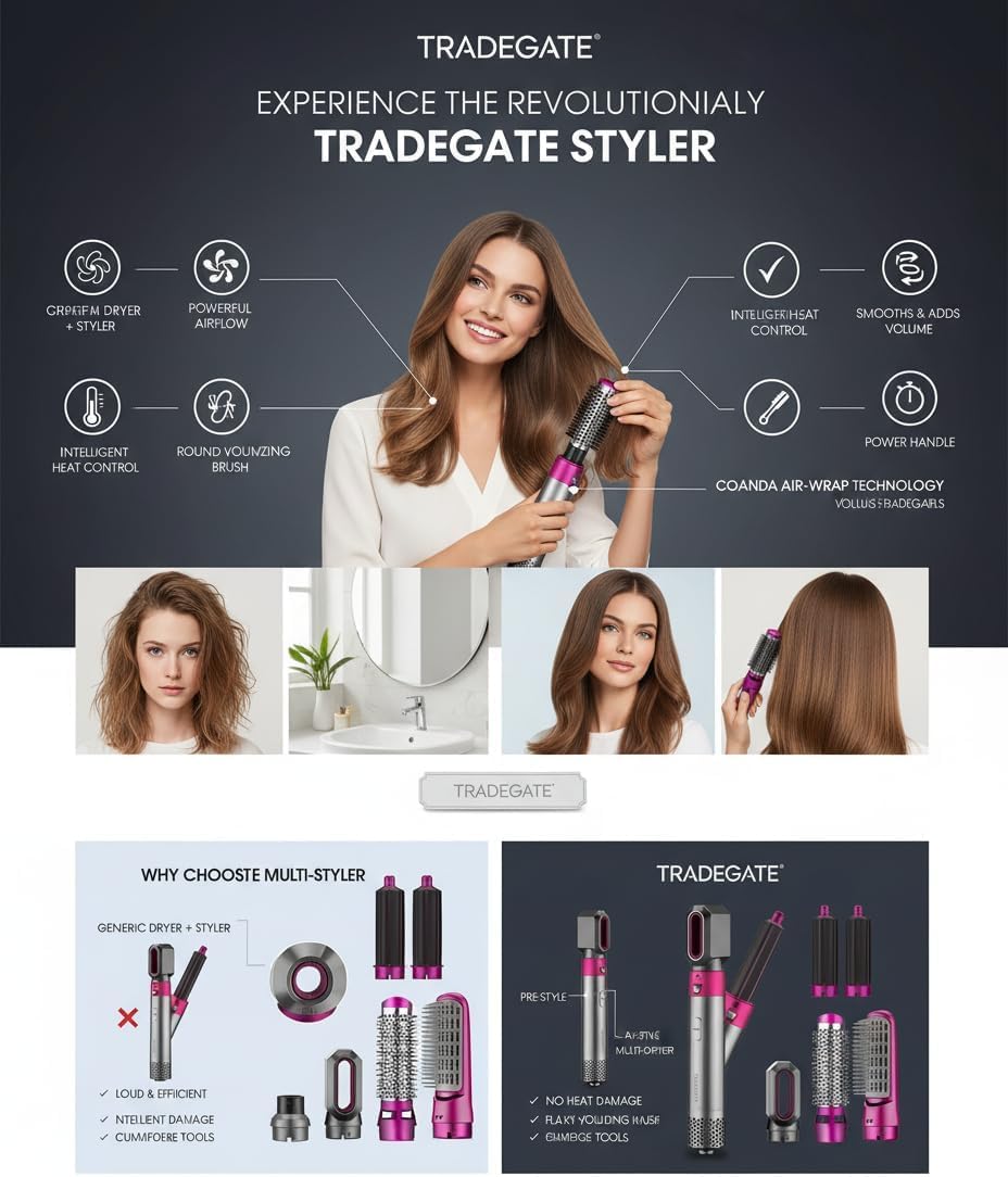 5-in-1 Multi-Functional Styling Tool – Combines hair dryer, curler, straightener, wave maker, and volumizer in one device, giving salon-style results at home in minutes