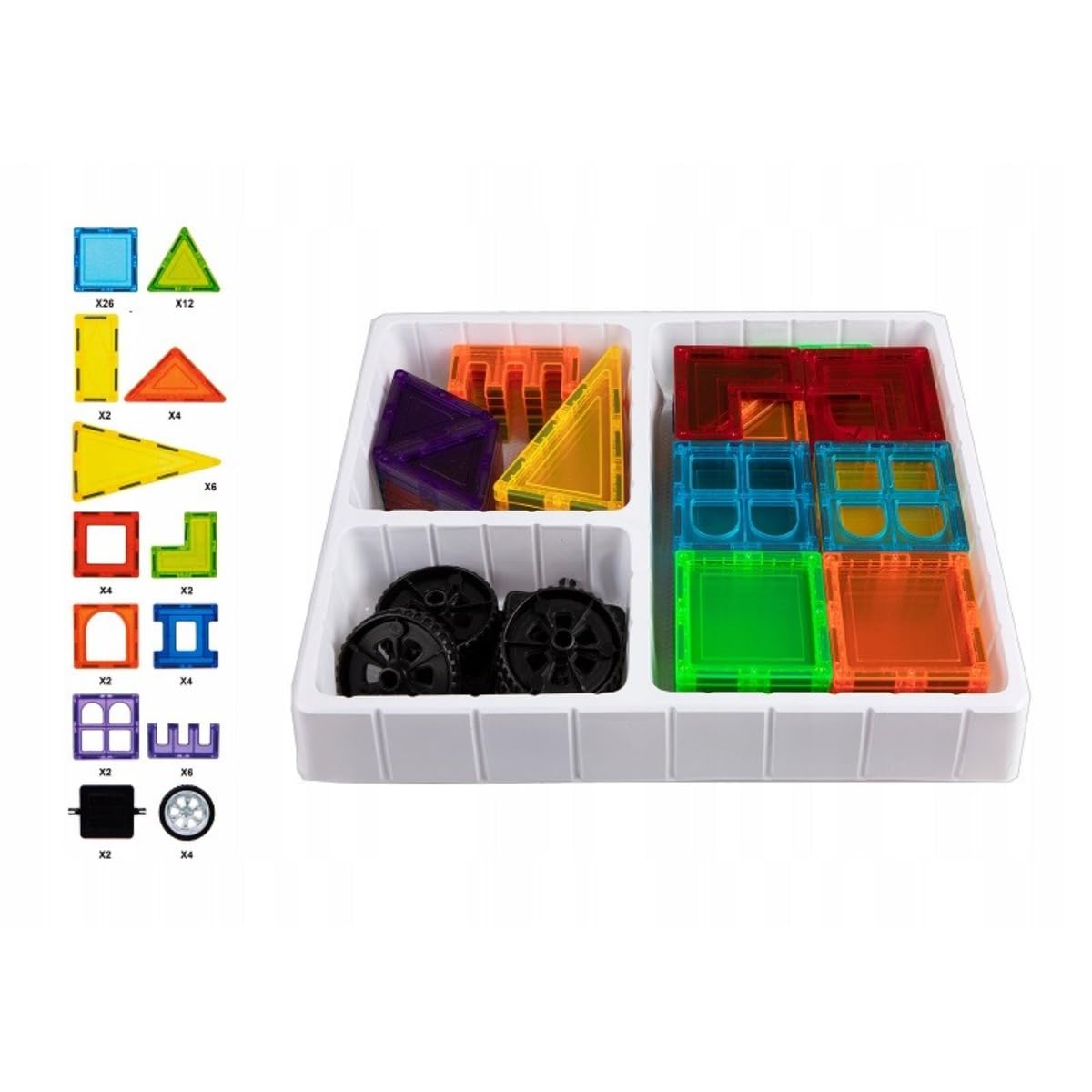Promote STEM Education and Development: Magnetic tiles offer educational benefits, aiding in the development of STEM skills, spatial awareness, fine motor skills, and hand-eye coordination, making learning fun and interactive.