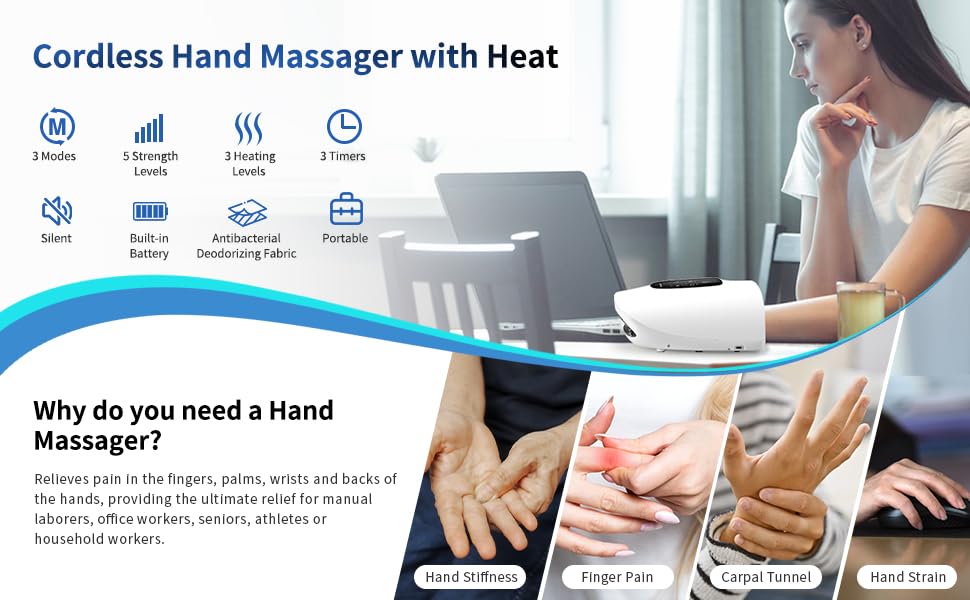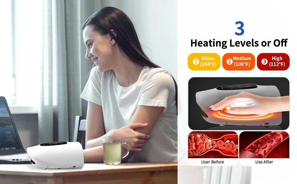 🌟 Relieve Hand Discomfort: This hand massager uses kneading, vibration, and gentle heat to relieve numbness, arthritis, joint pain, and carpal tunnel symptoms. It also improves circulation and eliminates fatigue.