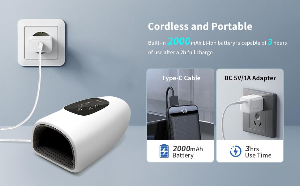 💆 Massage Modes: Choose from 3 modes: gentle, soothing, or powerful. Adjust based on your hand discomfort to find the perfect strength and pattern.