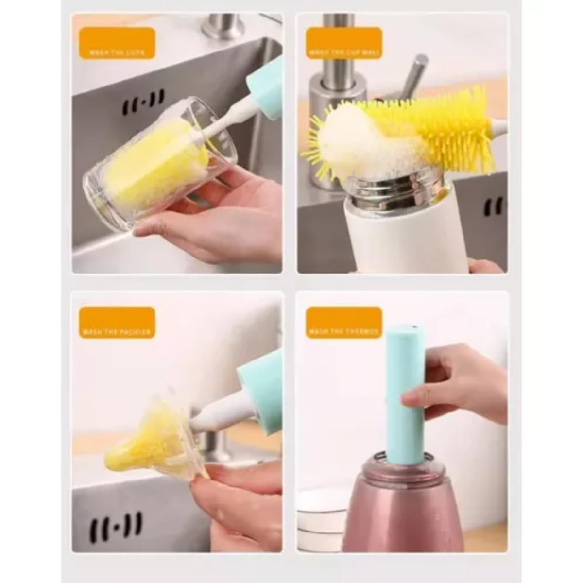 Perfect for All Ages: Ideal for cleaning baby feeding bottles, kids’ cups, and sports bottles, this multifunctional bottle brush set is essential for every household, promoting safe and hygienic feeding practices.