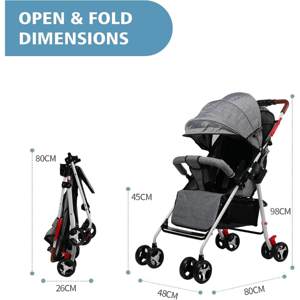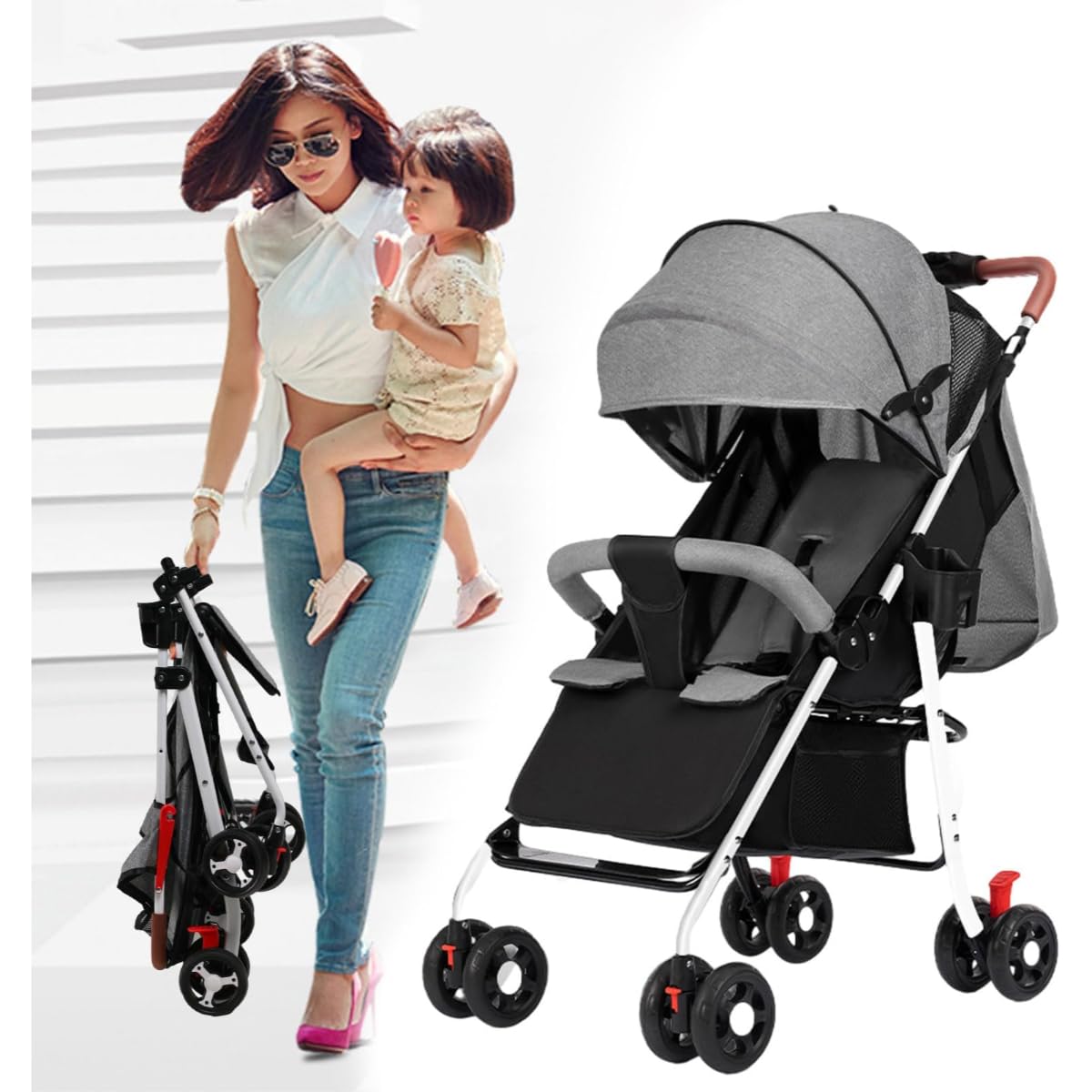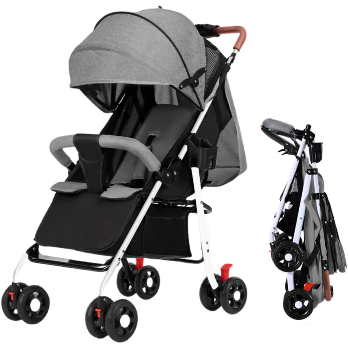 Baby Stroller for Toddler & Infant/Lightweight Foldable Travel Stroller, High Landscape Pushchair with Adjustable Backrest, Large Storage Basket & Detachable Bumper/Compact & Durable Design