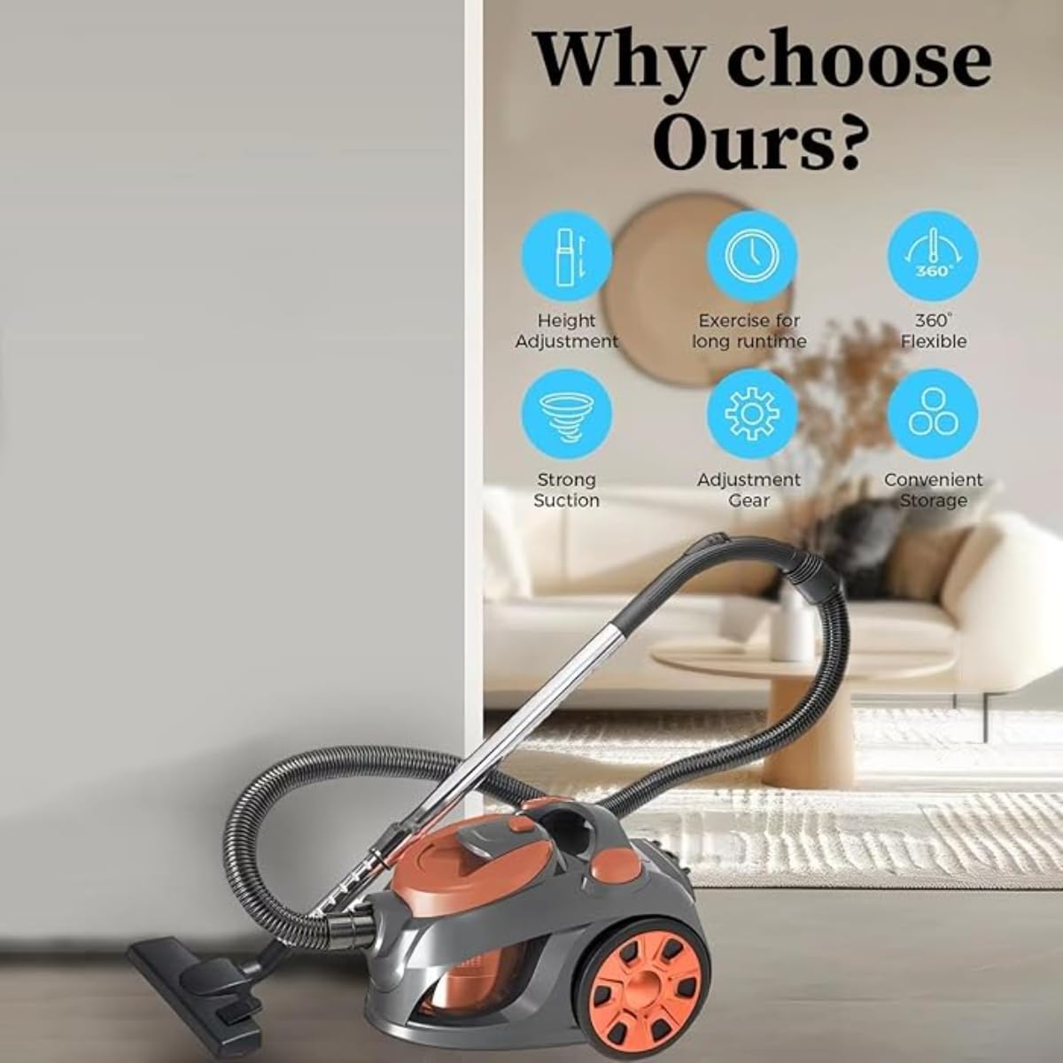 Versatile & Adjustable Cleaning: Perfect for various surfaces including carpets, hardwood floors, and upholstery. Features adjustable suction power for customized cleaning and easy transition between surfaces.