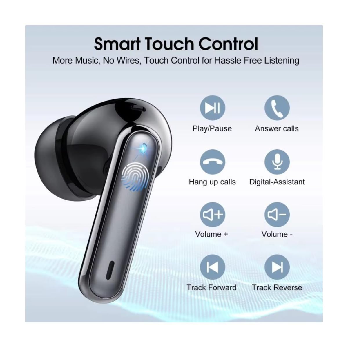Low Latency Bluetooth Earbuds with Touch Control – Experience lag-free audio for gaming, streaming, and calls; easy touch controls let you manage music, calls, and volume with a simple tap.