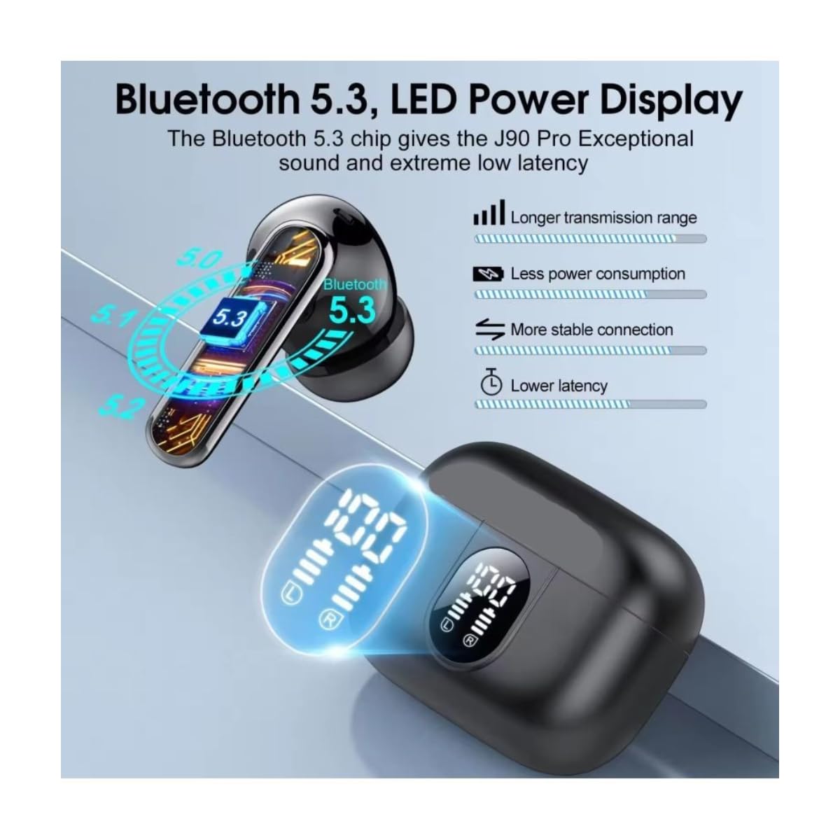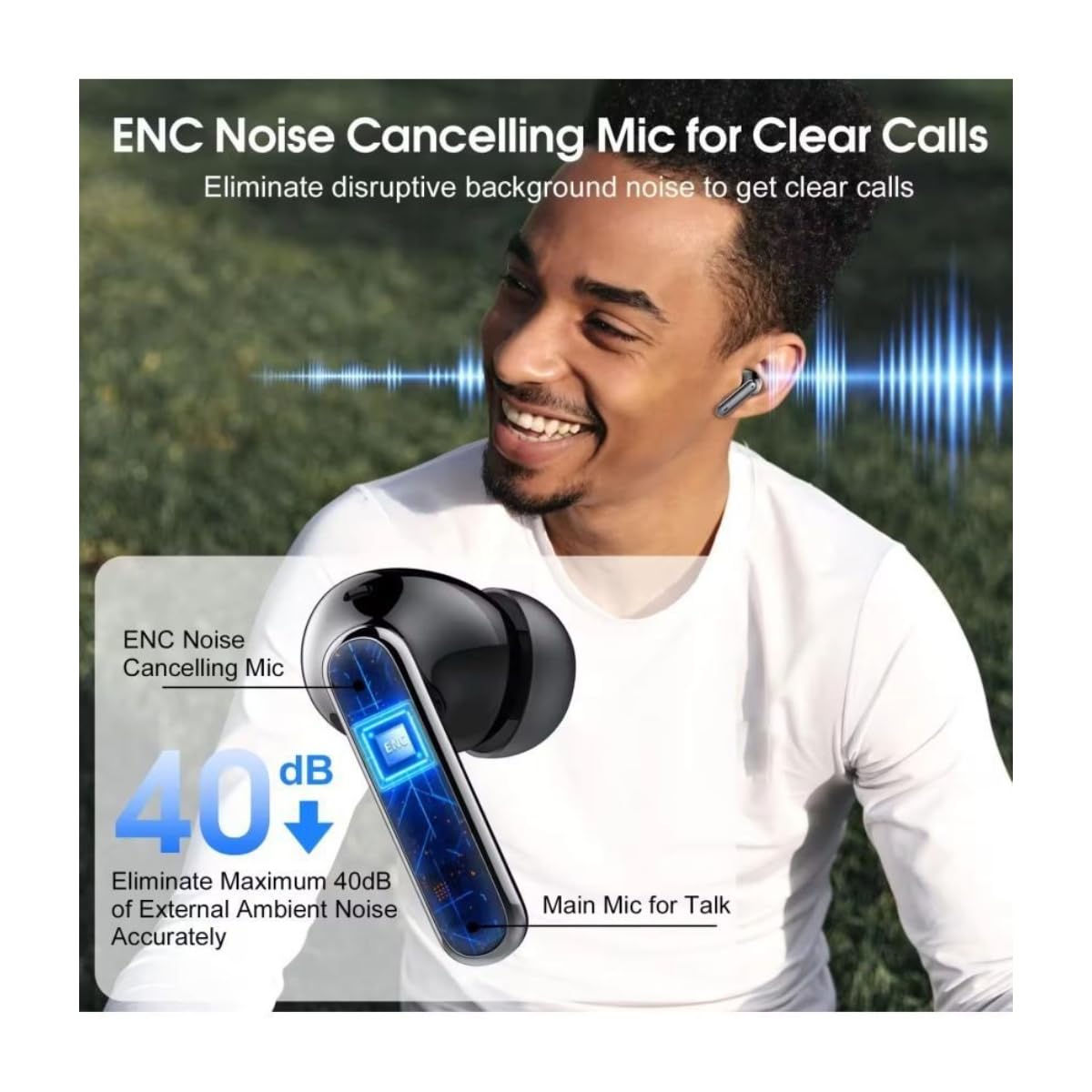 Bluetooth 5.3 True Wireless Earbuds with 60H Total Playtime – Enjoy long-lasting playback, powerful bass, and ultra-clear calls with ENC mic, perfect for music, gaming, and hands-free calls on the go.