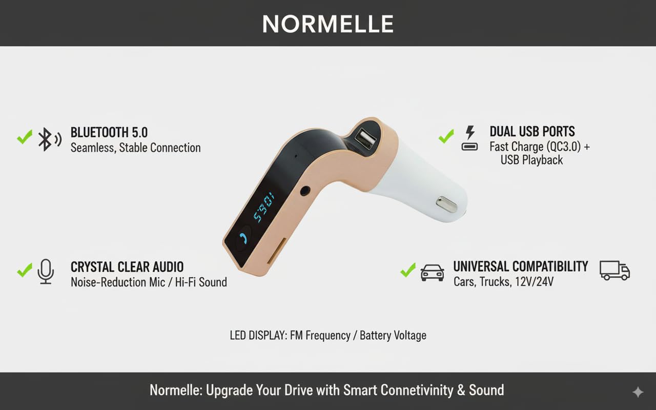 πŸ“Ÿ LED Display & Voltage Monitoring – Equipped with a bright LED display that shows FM frequency and car battery voltage in real time. The automatic memory function resumes your last used frequency, making reconnection simple and effortless every time you start your car.