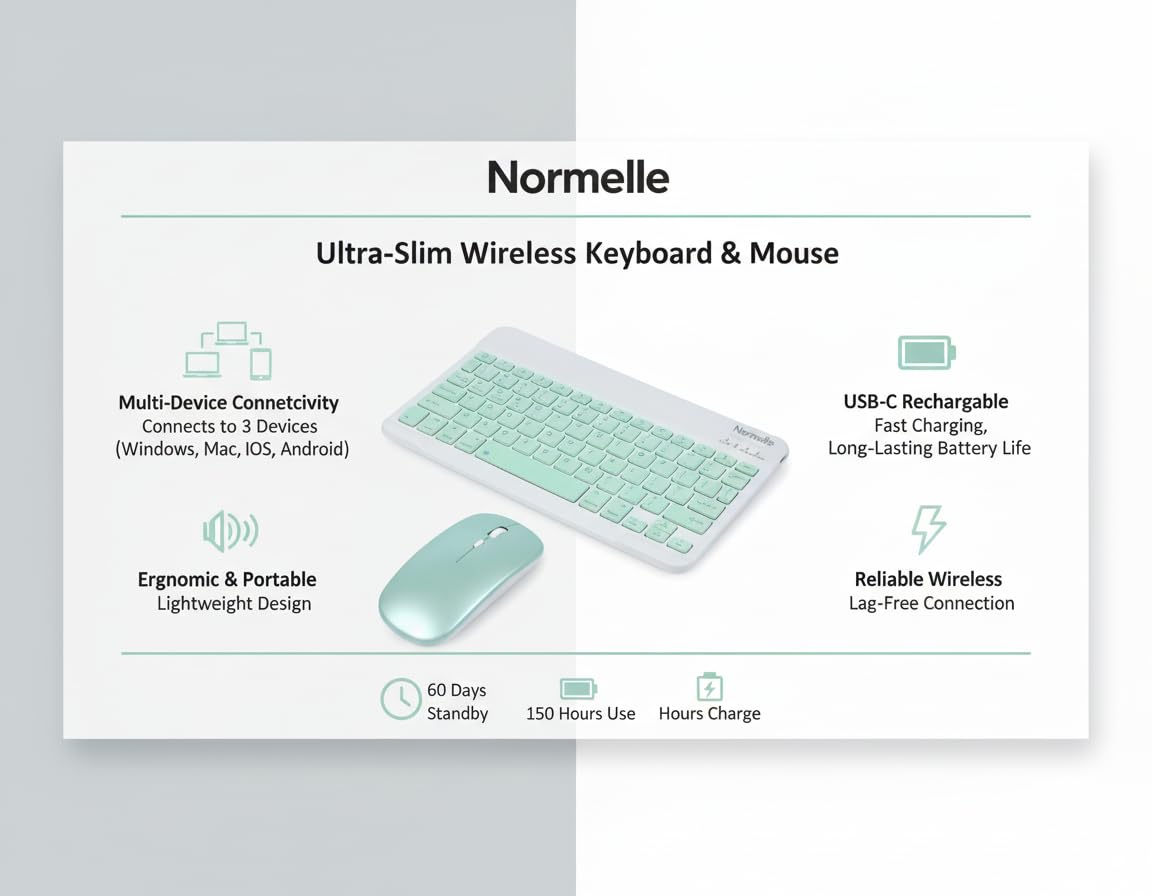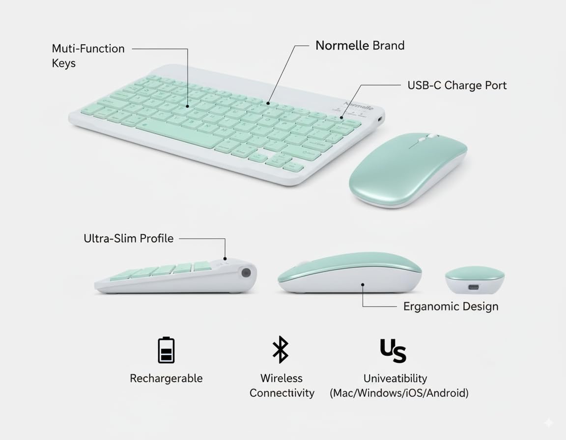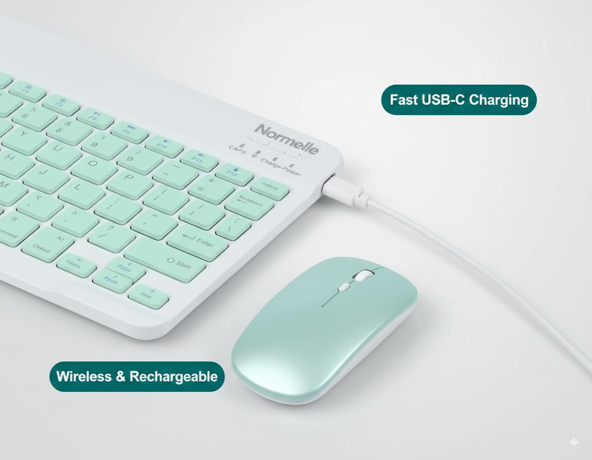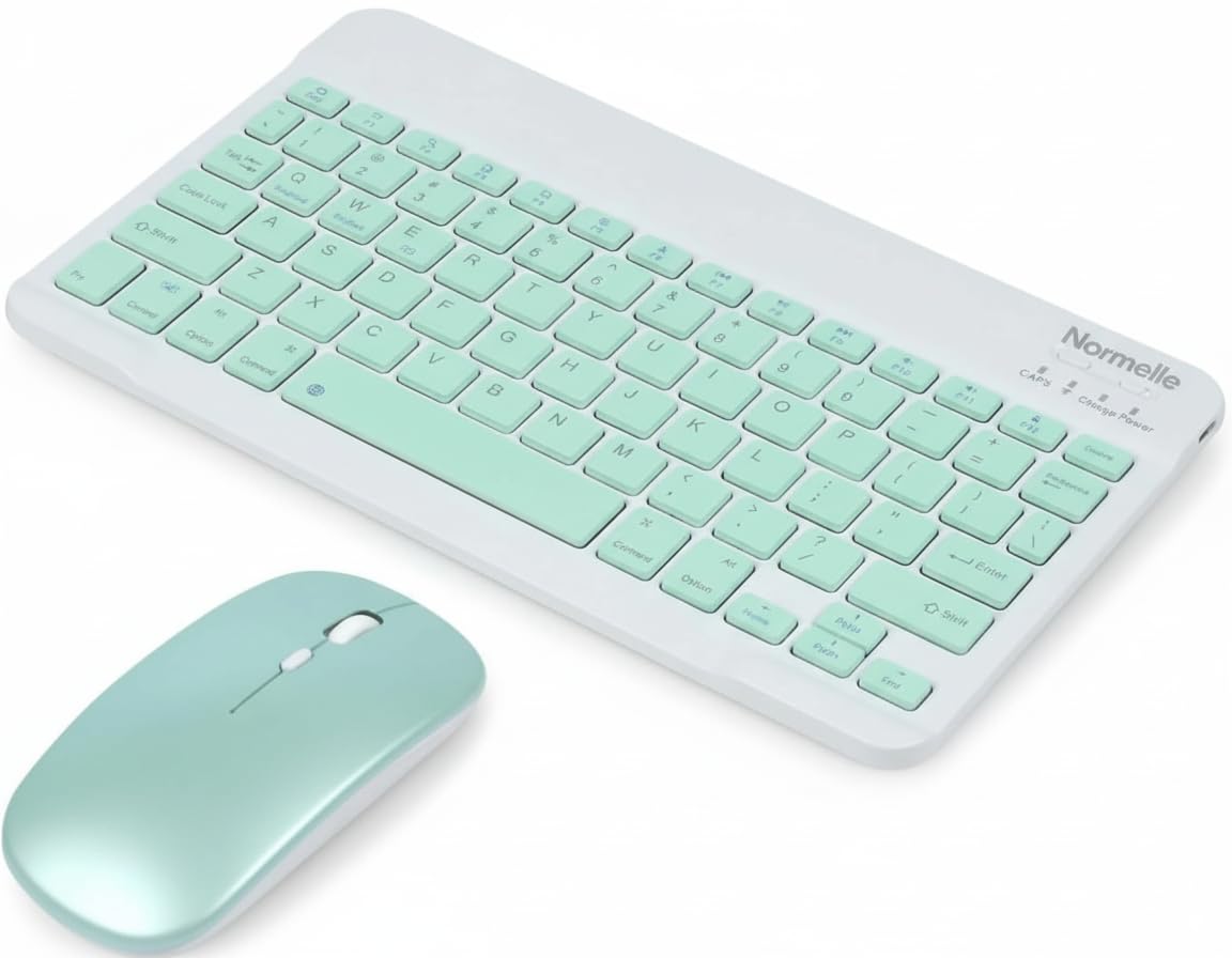 Bluetooth Keyboard and Mouse Combo, Ultra-Slim Portable Wireless Rechargeable Compact Keyboard Mouse Set for Tablets, iPads, Android, Windows, Mac OS, iOS Devices, Green