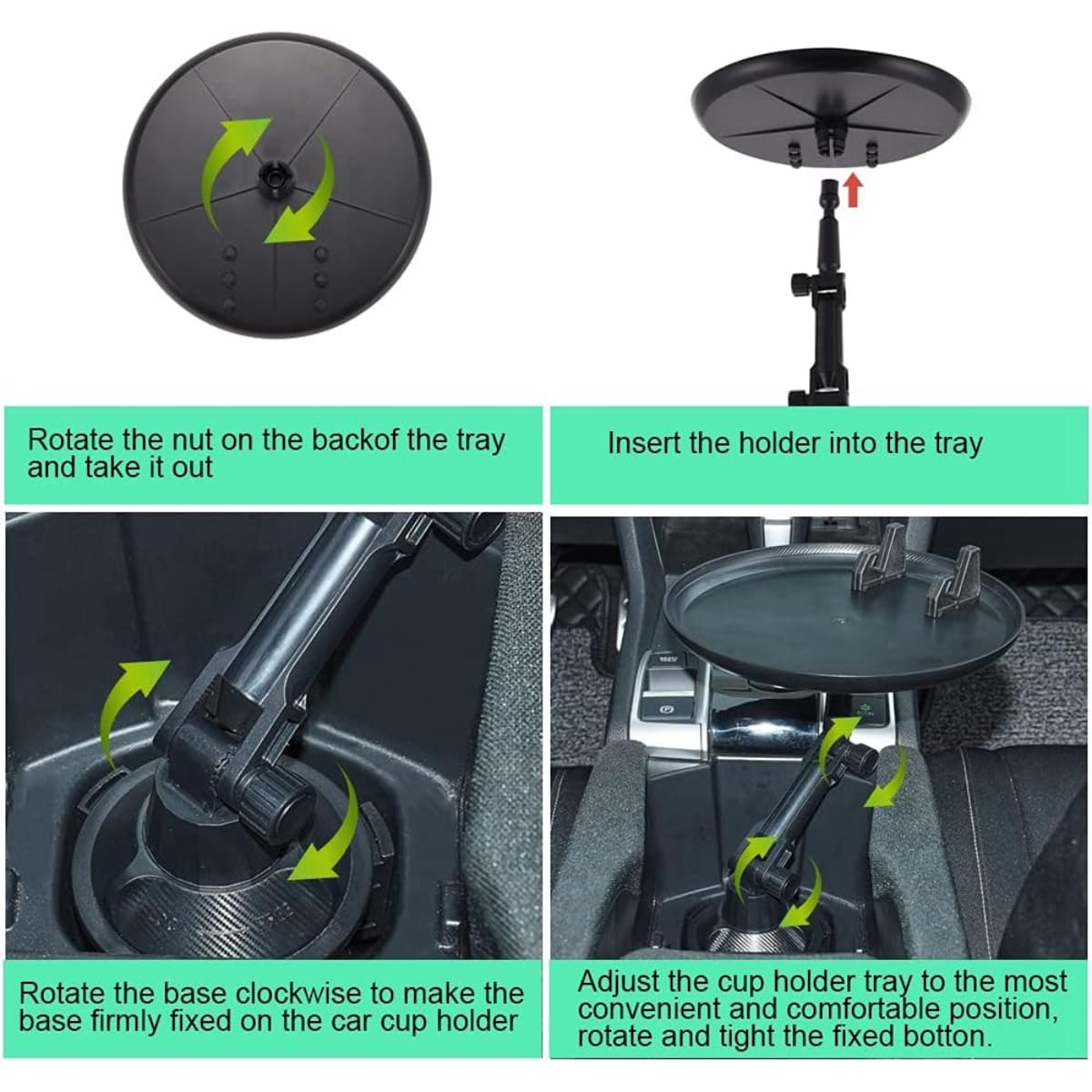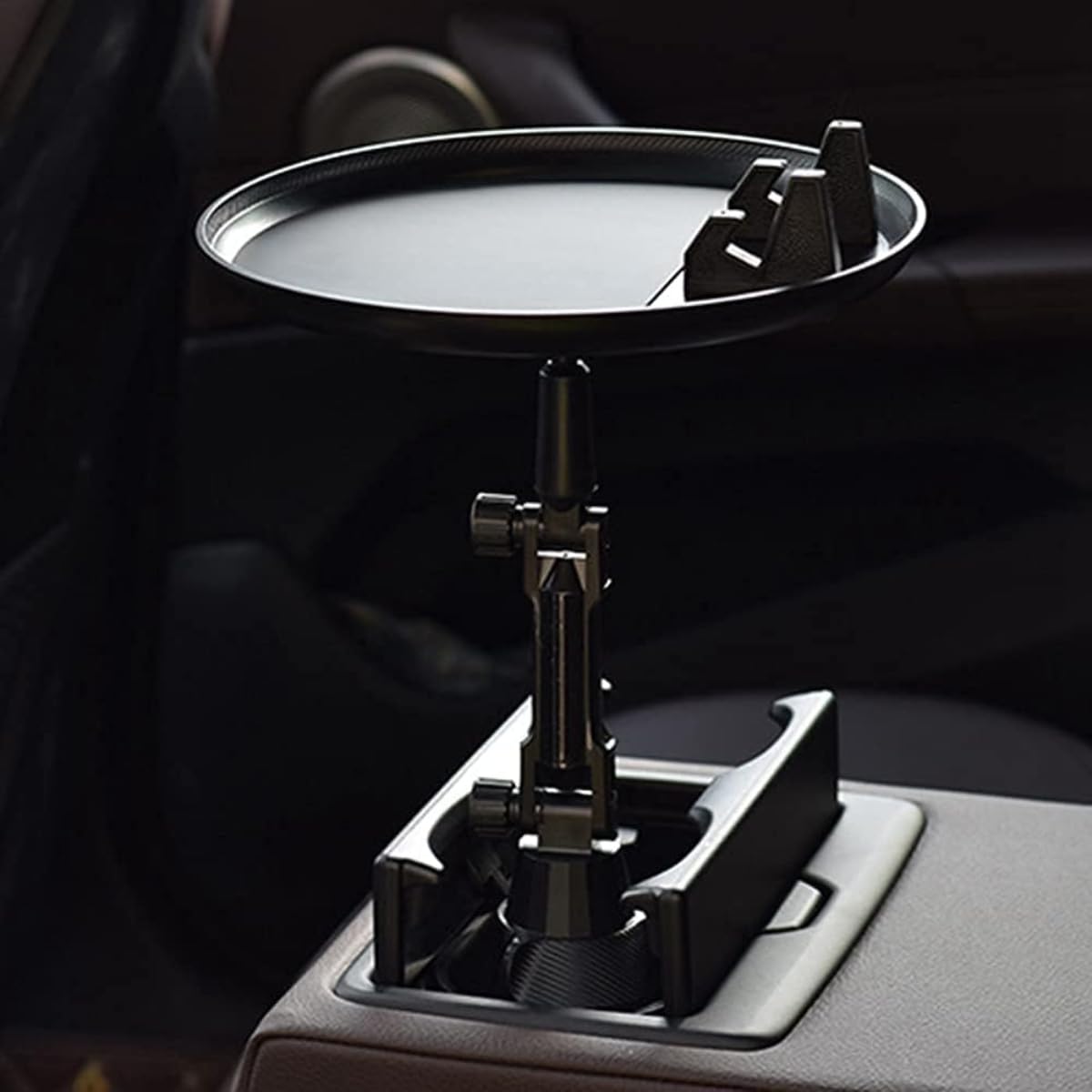 Versatile and Durable: Crafted from durable materials, this tray table fits various cup holder sizes, providing car phone holder a stable surface for laptops, meals, or drinks, ensuring a clutter-free car interior.
