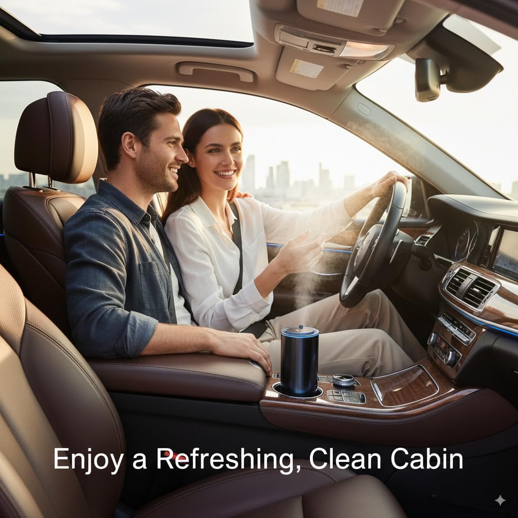 Instant Aroma & Air Purification – Using advanced ultrasonic mist technology, the diffuser instantly releases a fine mist of fragrance into the air. Within seconds, your car or room feels refreshed, masking odors from smoke, pets, or food. Ideal for maintaining a clean and pleasant atmosphere whether driving, working, or relaxing.