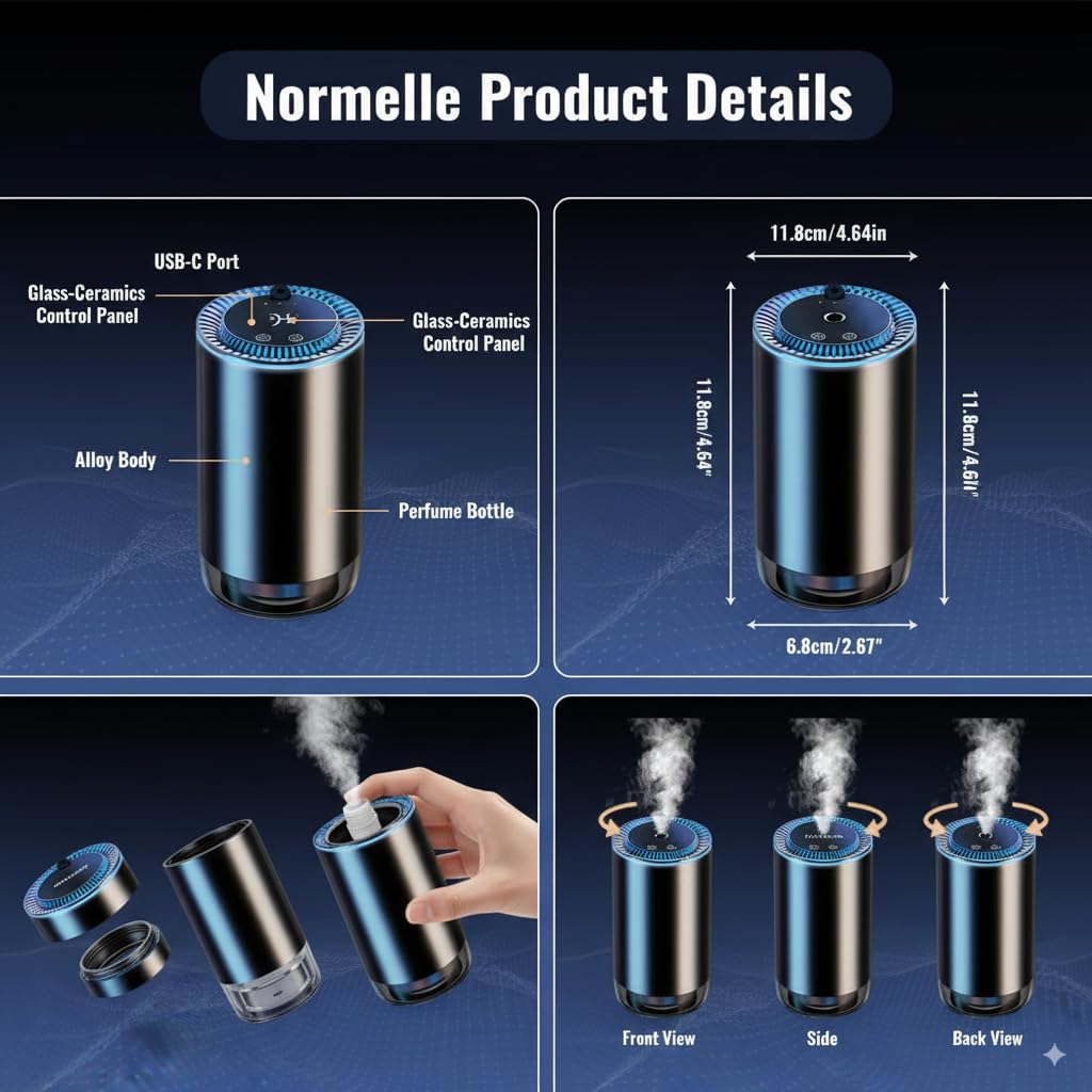Durable Design & 3 Mist Modes – Made with high-quality materials and compact dimensions (11.8 × 6.8 × 6.8 cm), this diffuser is built for long-lasting use. With three adjustable misting levels—low, medium, and high—you can personalize fragrance intensity based on your environment, ensuring comfort on short drives or long road trips.