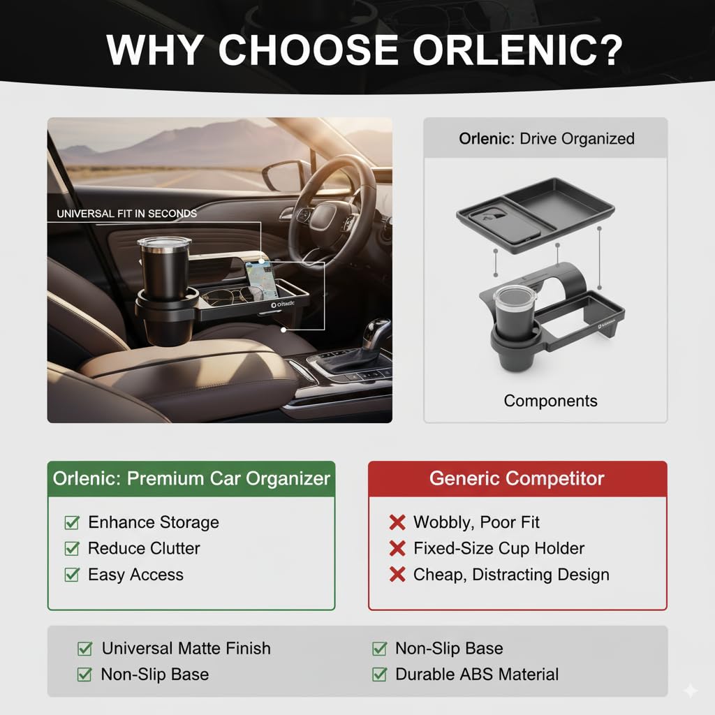 🛠️ EASY ACCESS & CONVENIENT USE – Designed for everyday driving, this organizer installs on the side window or seat gap area without tools or adhesives. Perfect for holding drinks, smartphones, or personal items within arm’s reach without affecting your view or driving comfort.