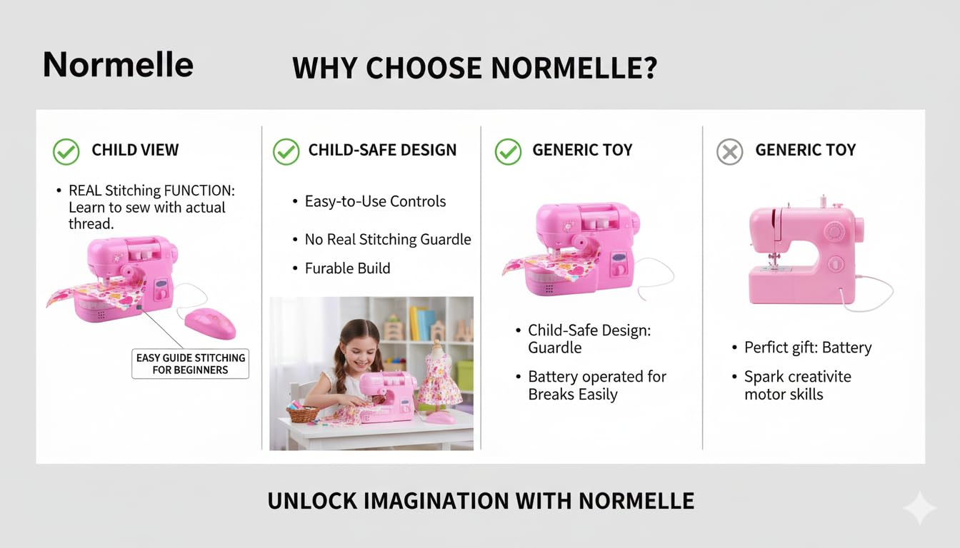 2. Educational & Skill-Building Activity – Encourages kids to practice role-playing, hand-eye coordination, and motor skills while boosting imagination and creative thinking through pretend sewing projects at home.