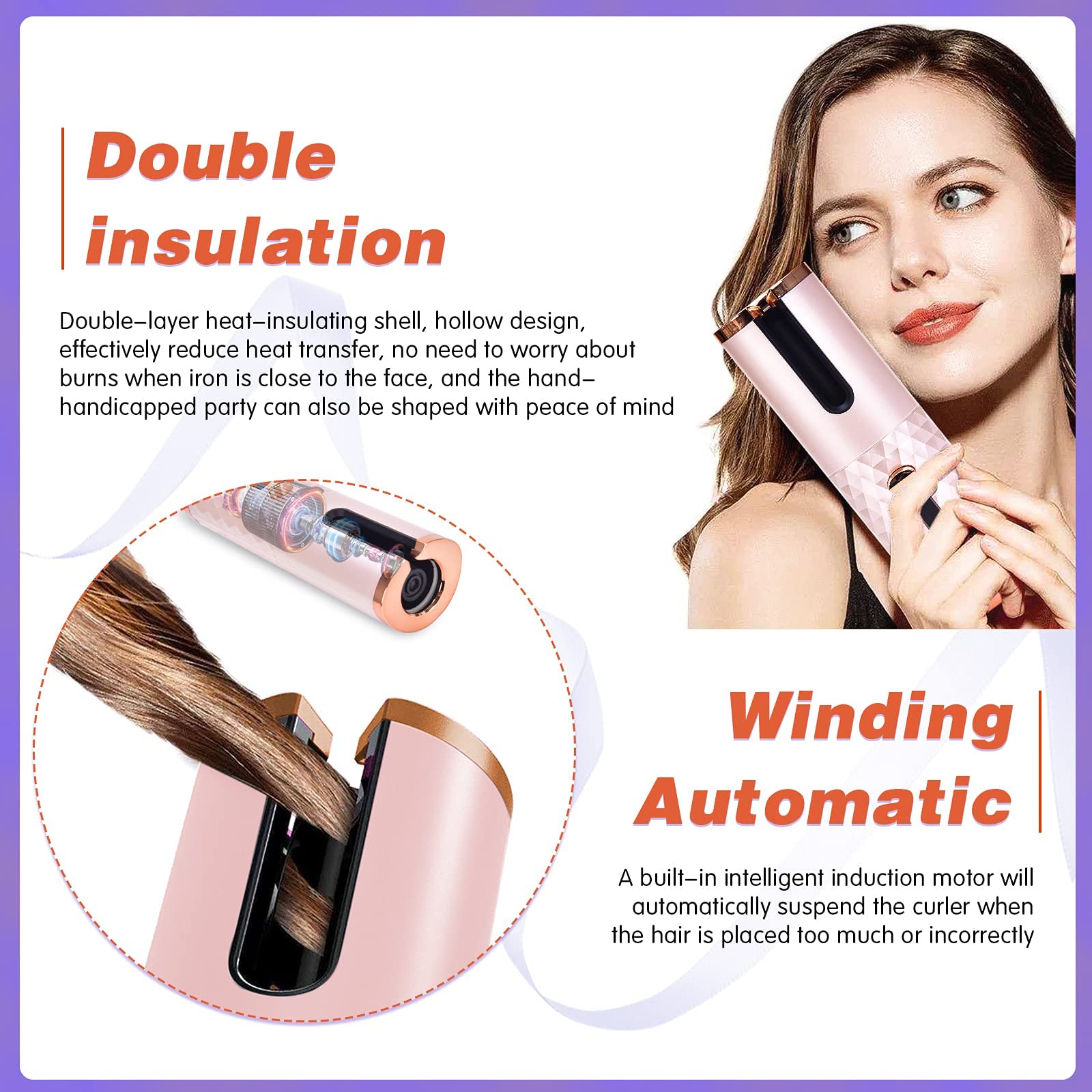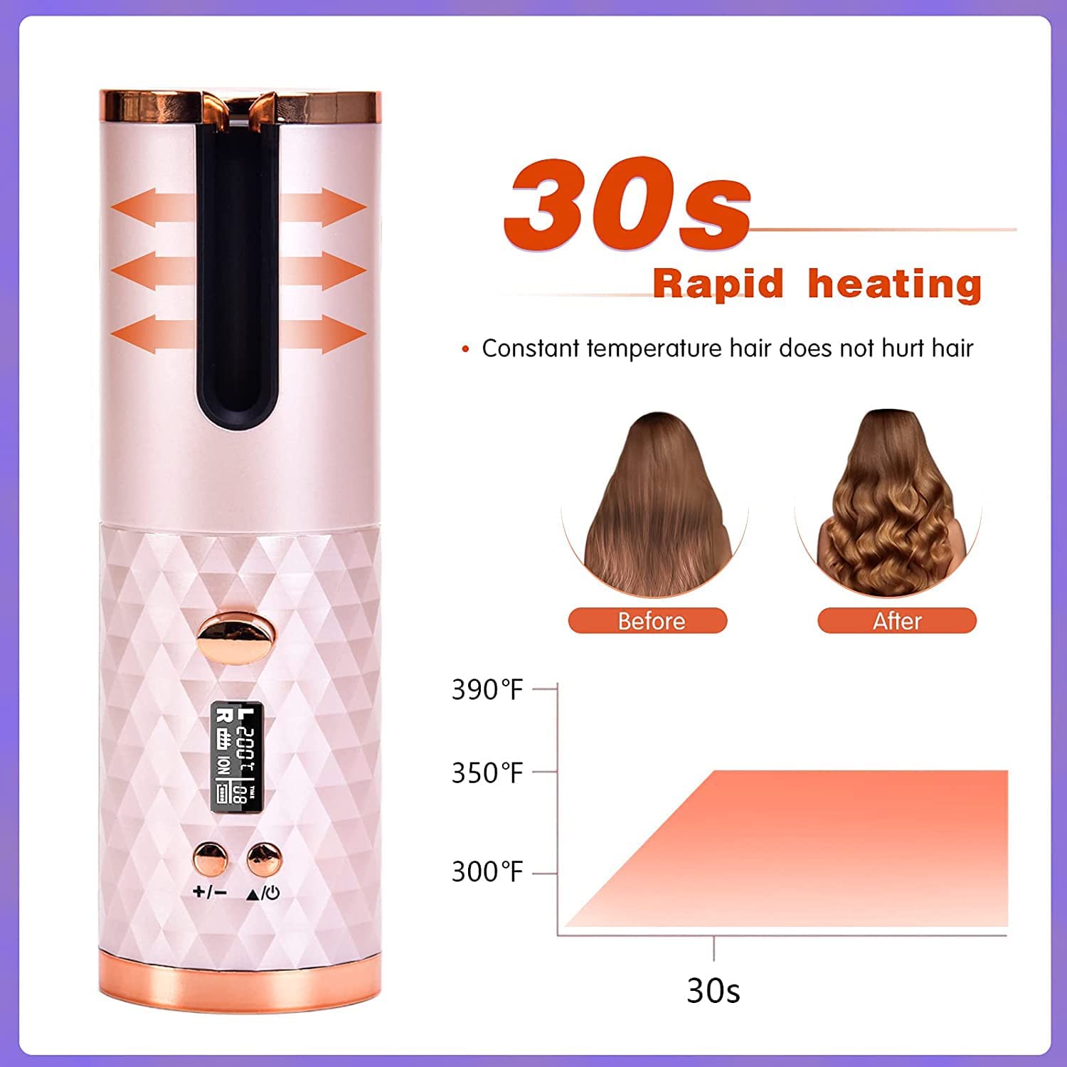 ✨ Automatic Rotating Curling Iron with Anti-Frizz Benefit: Designed with ceramic coating and tourmaline, this cordless curler releases negative ions to lock in moisture, reduce static, and add natural shine while protecting your hair.
