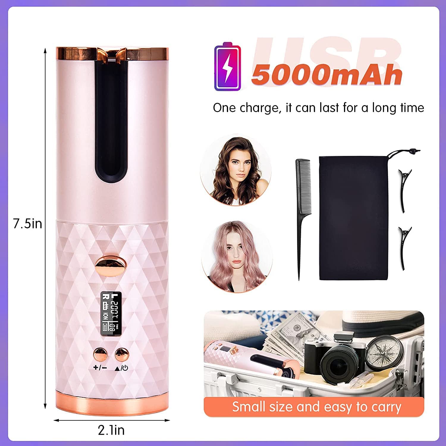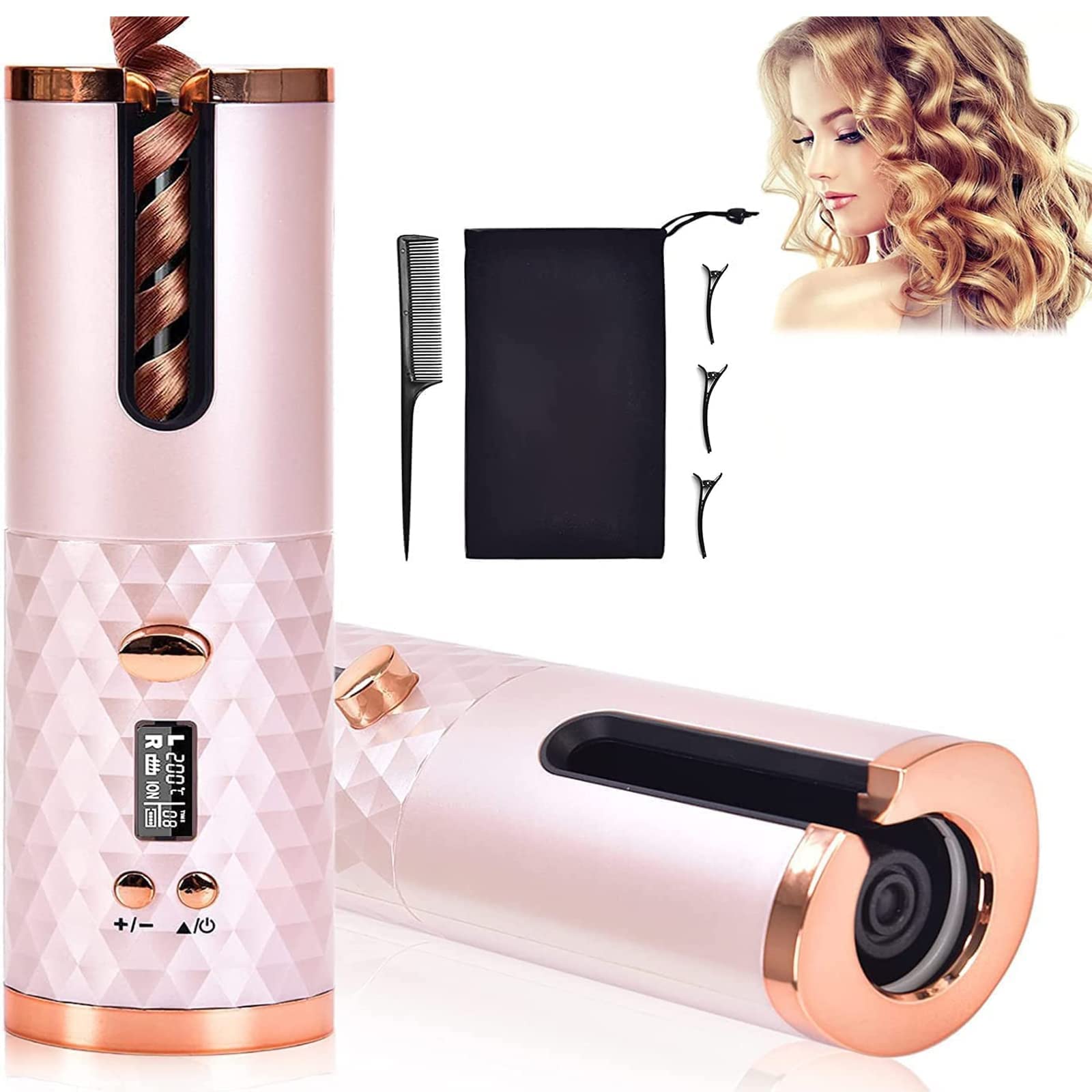 Cordless Automatic Curling Iron with Ceramic Barrel, USB Rechargeable Hair Curler Wand with 4 Heat Levels & 3 Timers, Fast Heating Portable Curling Tool for Long & Short Hair