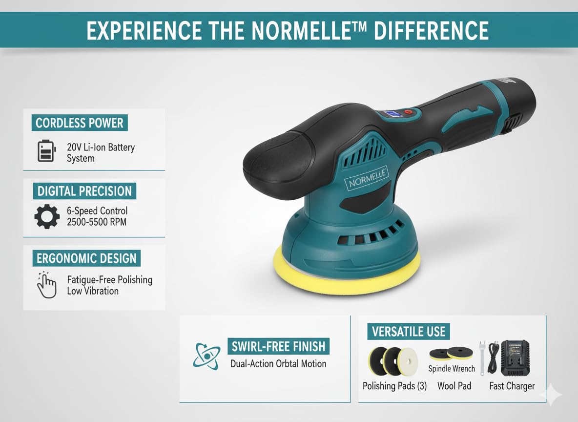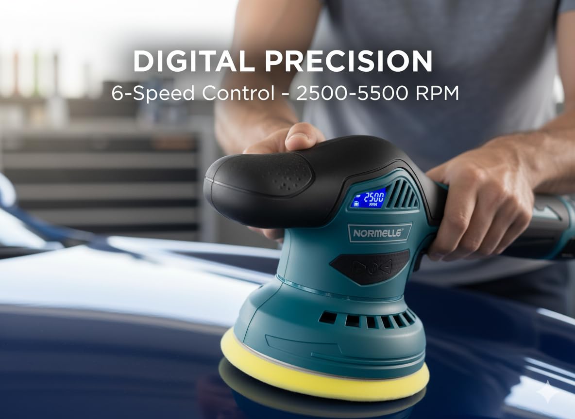 ✔ 8 VARIABLE SPEED SETTINGS FOR PRECISE CONTROL Electric Car Polisher Kit Features 8 adjustable speed levels (2800–5500 RPM) for low to high-speed applications. Whether polishing, buffing, or light grinding, the user-friendly control lets you tailor speed to your task.