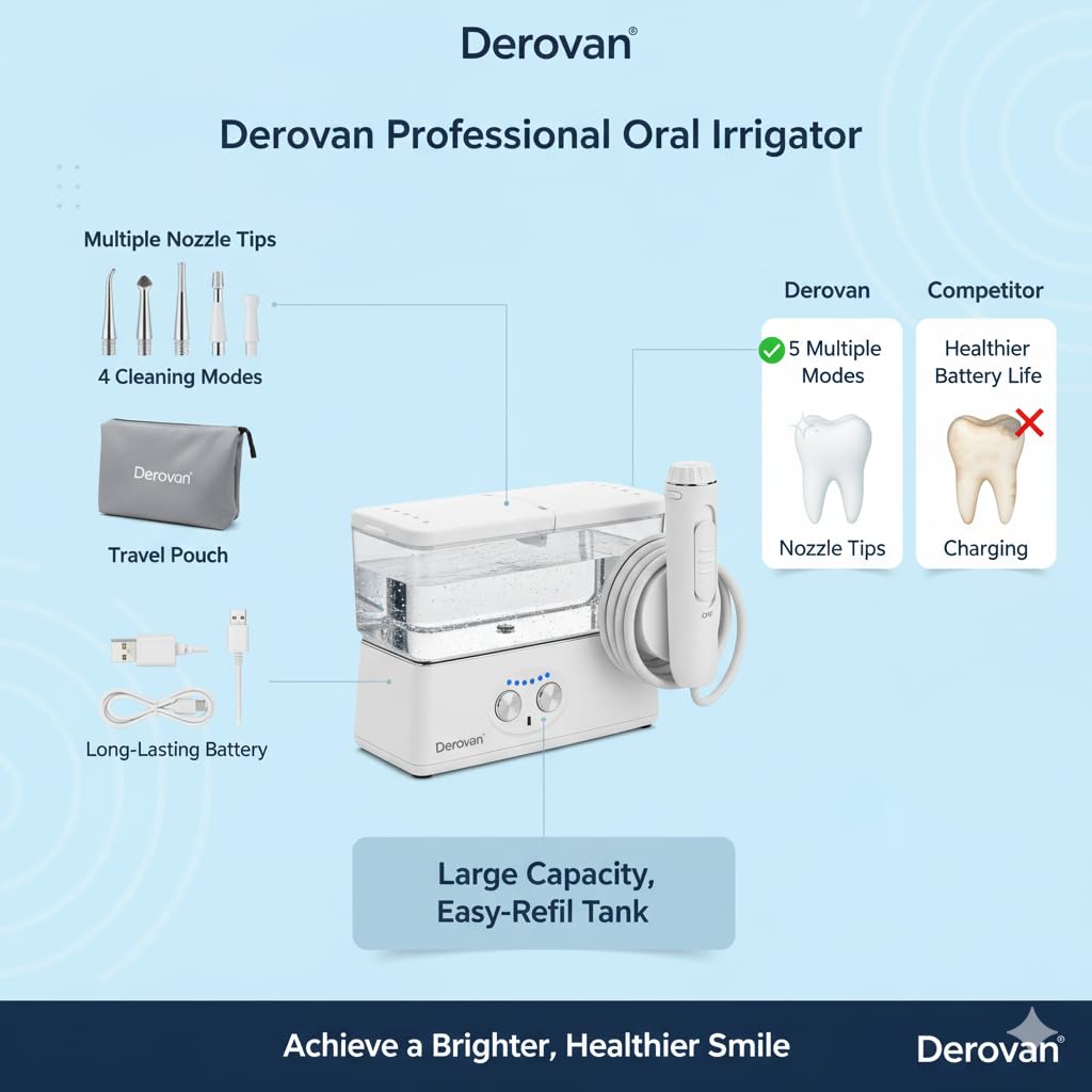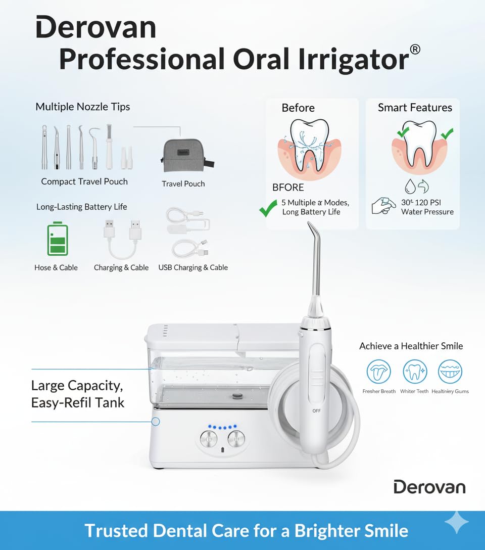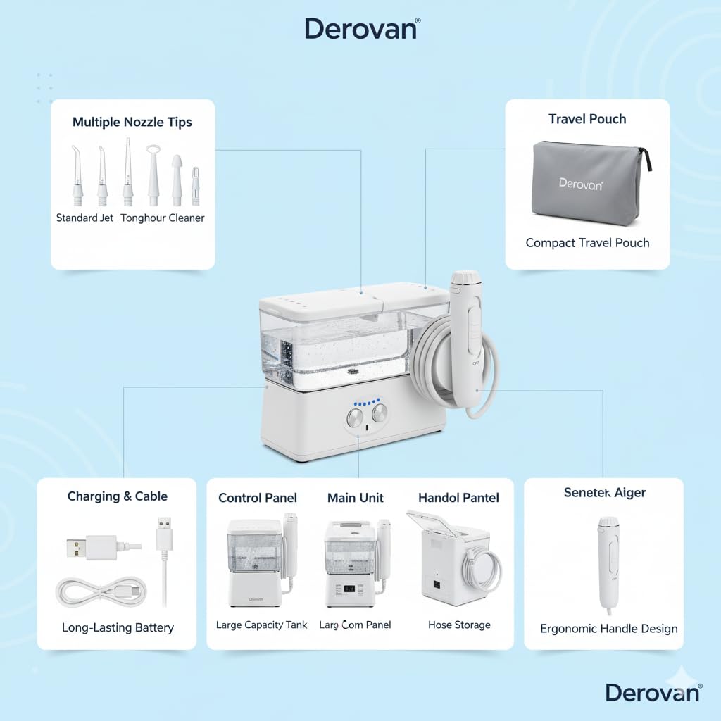 5 Precision Cleaning Nozzles – Includes options for general tasks, whitening, periodontal care, orthodontics, and tongue cleaning—so every part of your mouth gets adequate care.