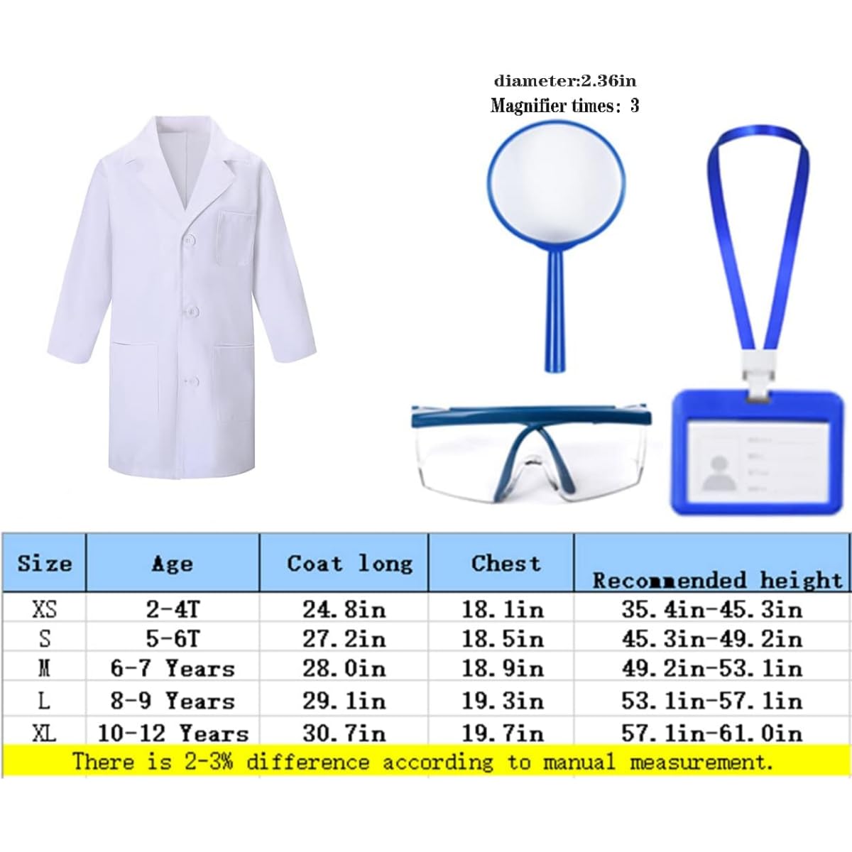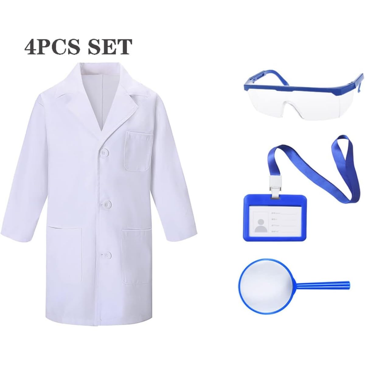 [COMPLETE COSTUME SET] – Includes 4 pieces: thick white lab coat, pretend scientific tools, and accessories perfect for imaginative play.