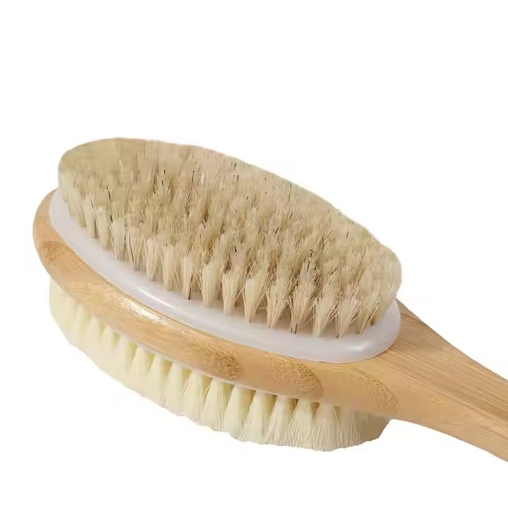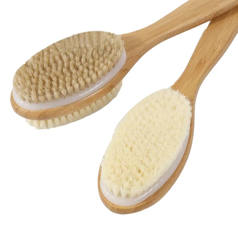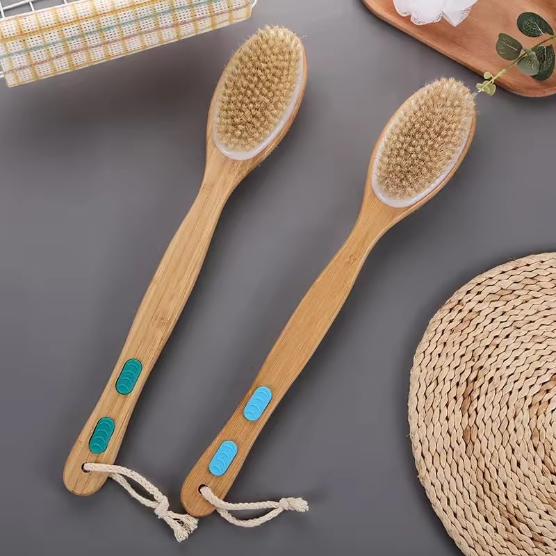 Double-Sided Bamboo Shower Brush with Long Handle – Soft & Firm Bristles for Gentle Exfoliation and Deep Cleansing, Back Scrubber for Bath or Dry Brushing, Ideal for Smooth, Radiant Skin