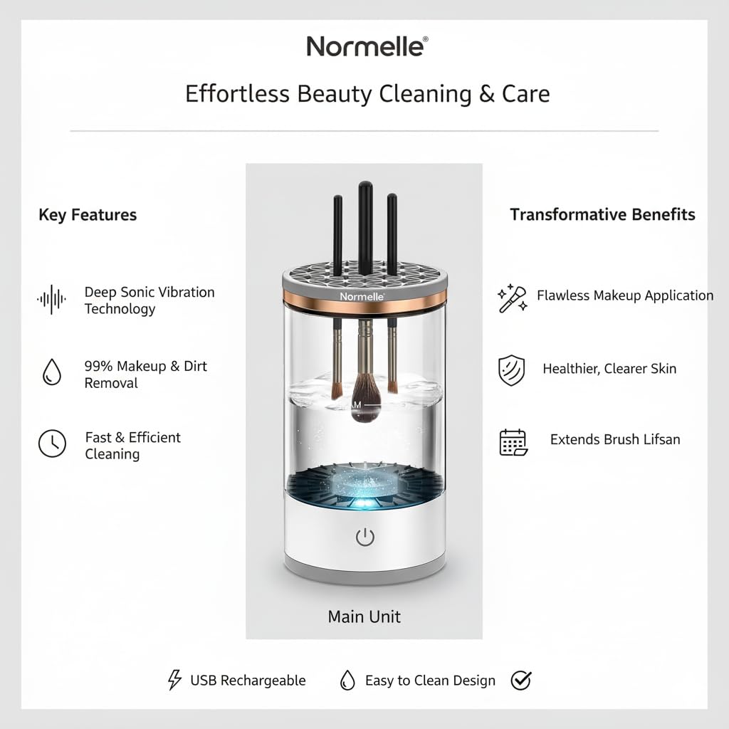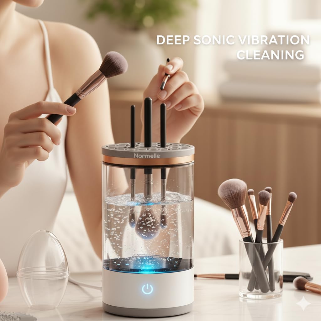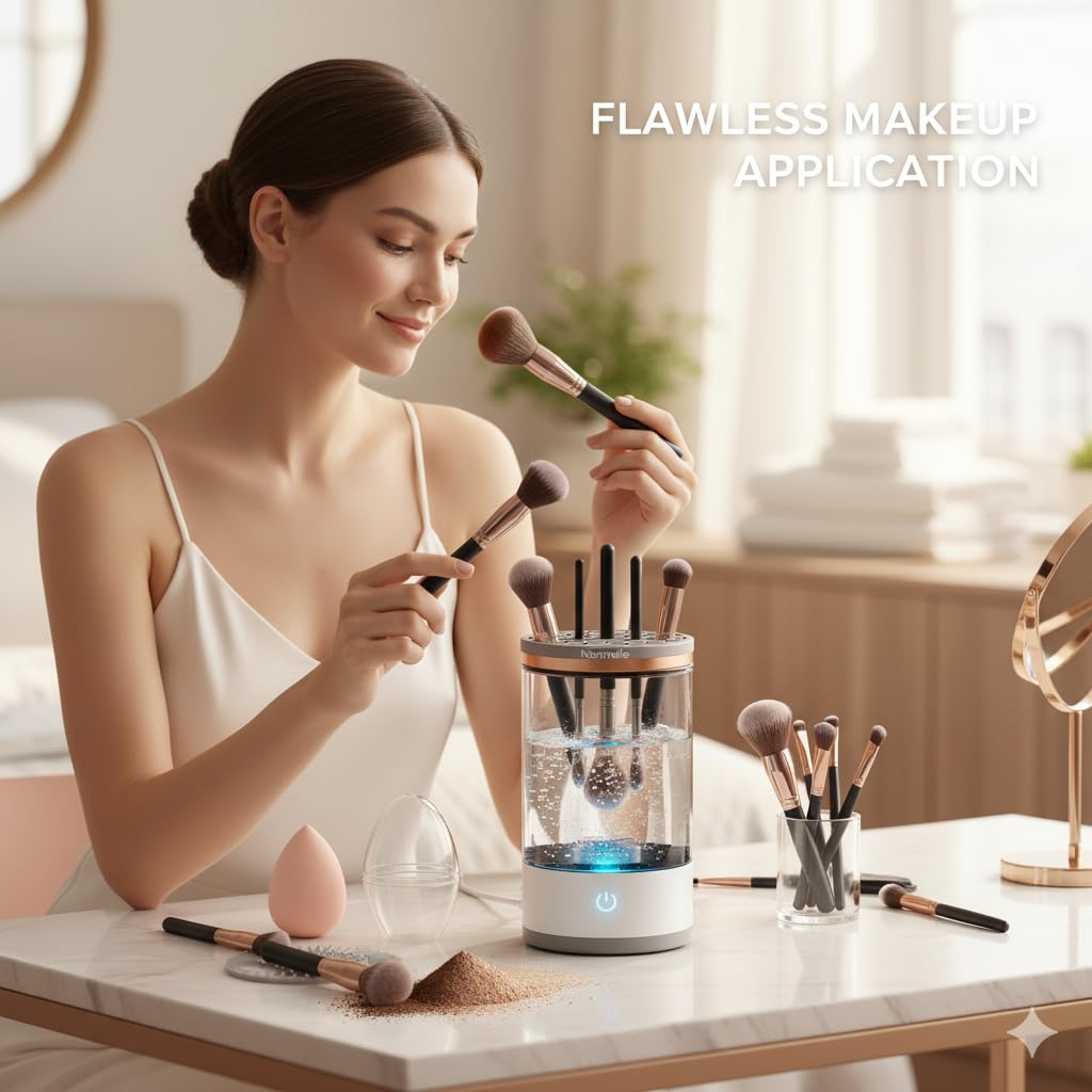 High-Quality Deep Cleaning: Features a powerful motor that spins at 7000 RPM, ensuring thorough removal of makeup residue, oils, and impurities. Cleans brushes gently without damaging bristles, maintaining their softness and longevity for professional-level results at home.