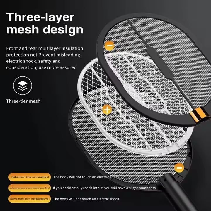 Triple-layer mesh design ensures safety while in use, protecting fingers from accidental contact with the electrified grid.