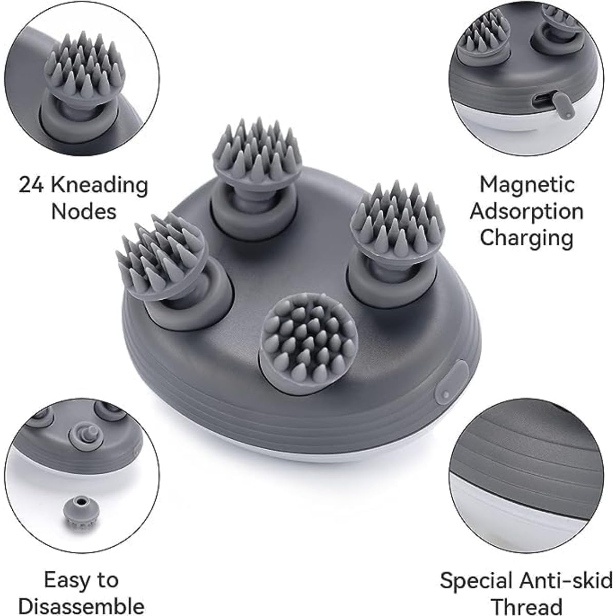 Electric Scalp Massager, 4 Massage Heads, 3 Speeds, Waterproof & Cordless. Enhances Hair Growth, Stress Relief, and Relaxation, Perfect for Pets and Humans, Rechargeable & Portable