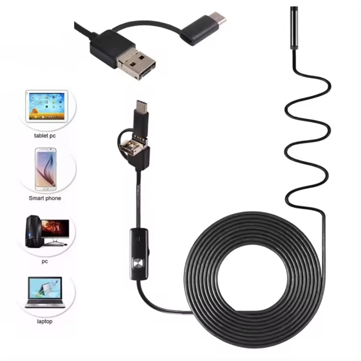 Endoscope Bundle: HD Borescopes, Inspection Cameras, Semi-Rigid Snake Cameras, Waterproof IP67, Dual Lens, USB Connectivity, LCD Screen – Cable, Adjustable