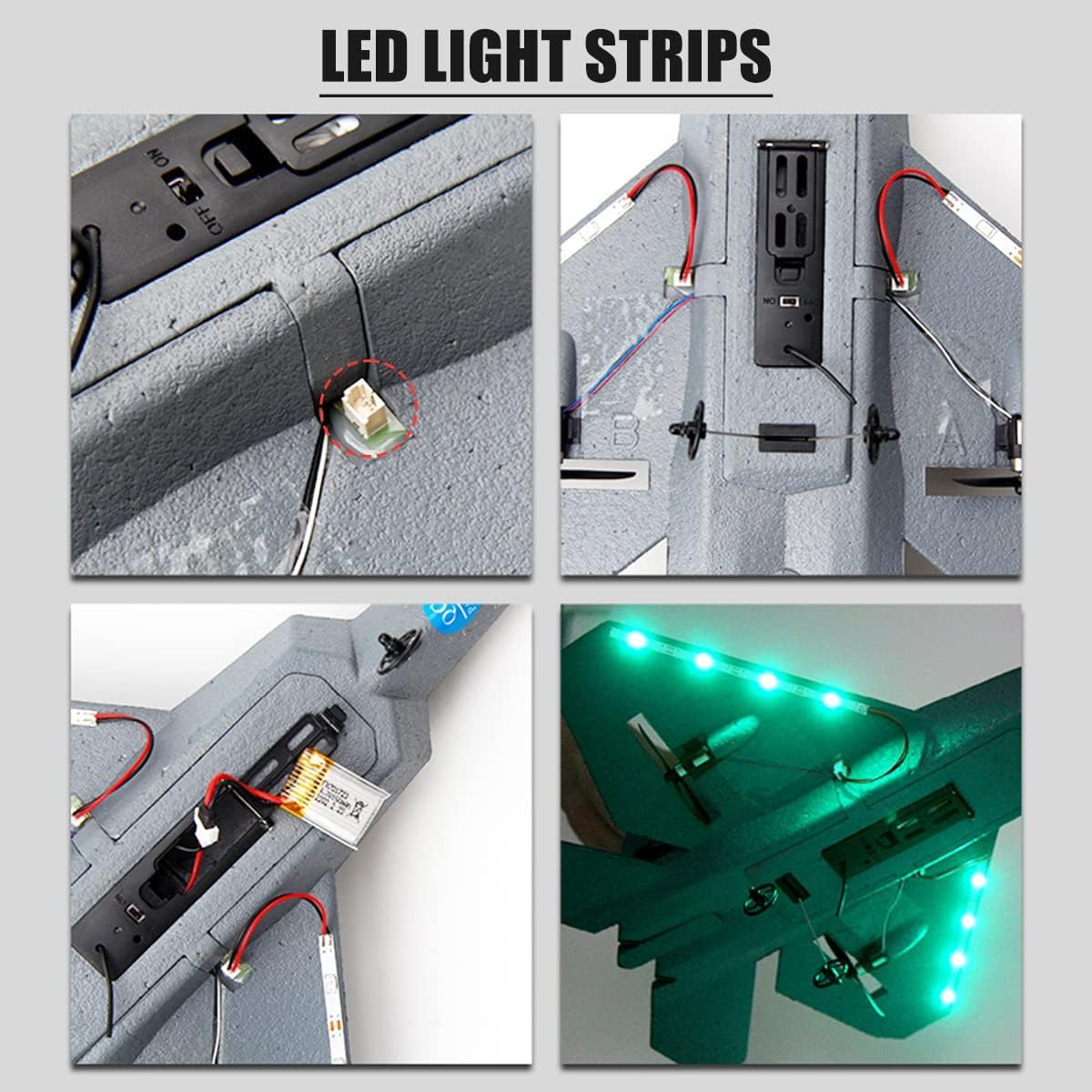 Durable EPP foam construction makes this RC F-22 Fighter crash-resistant. Equipped with LED lights, it’s perfect for night flying and offers stable flight with a smart gyroscope for easy control.