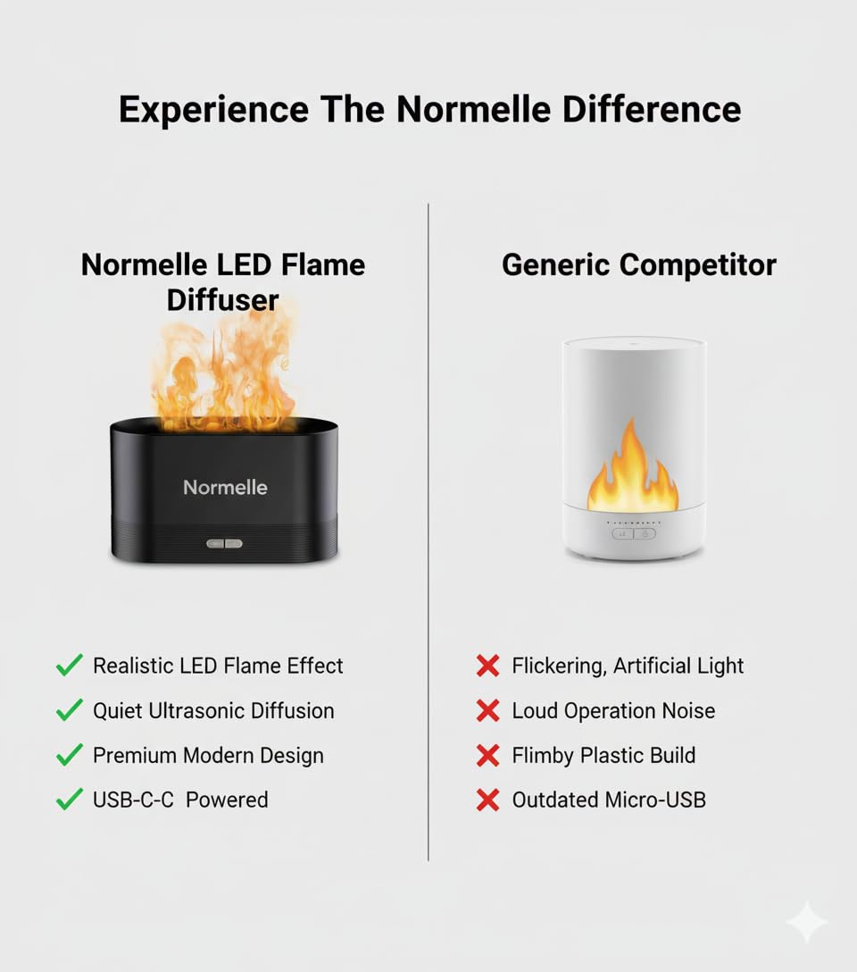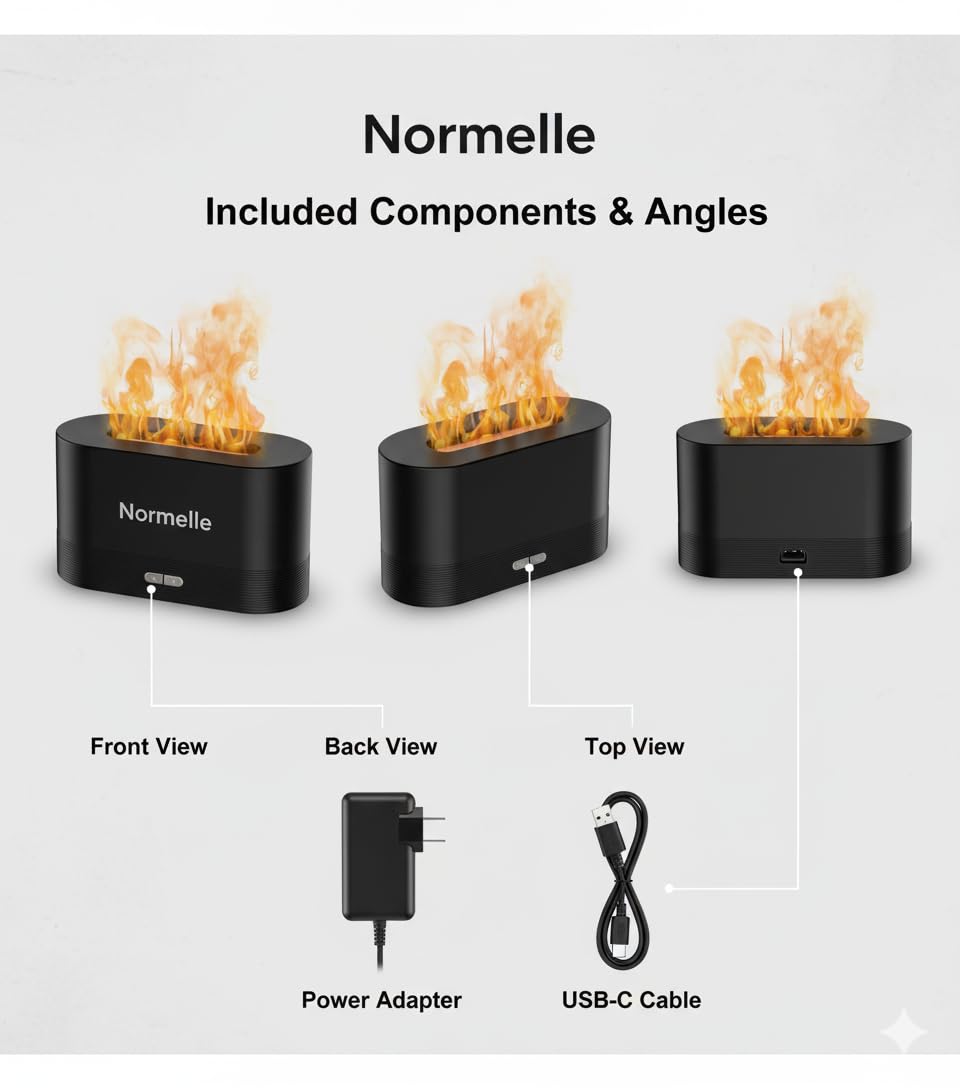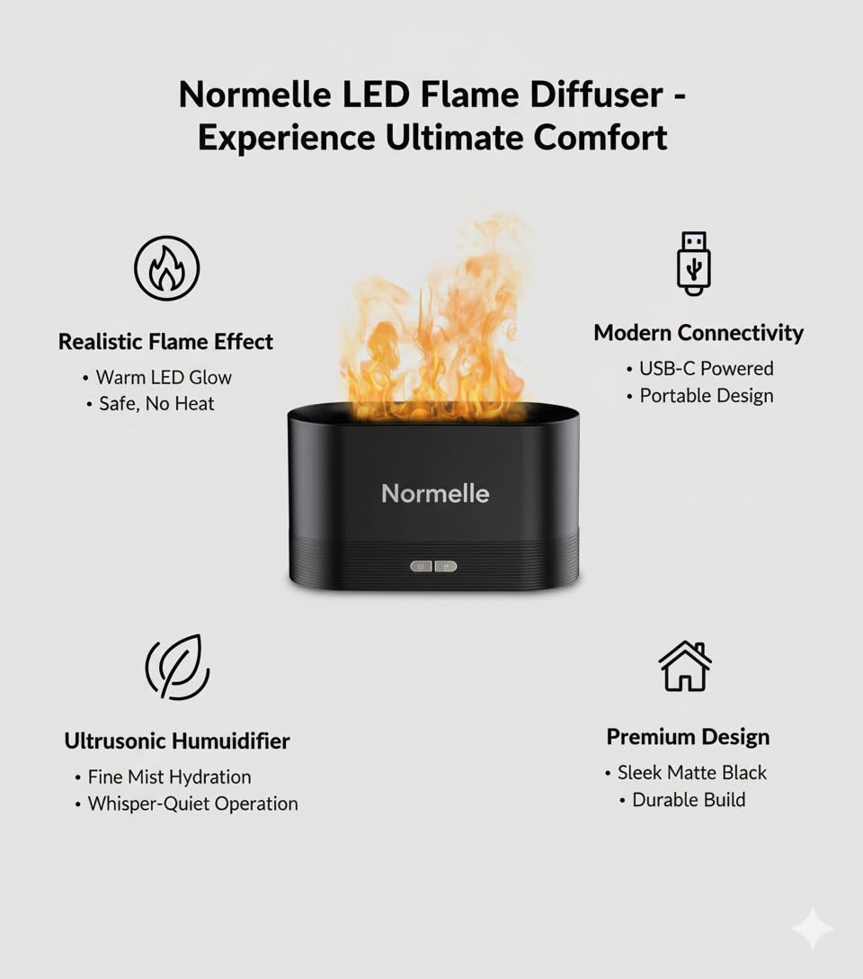 2-in-1 Diffuser and Humidifier with Flame Effect – Combines ultrasonic misting with a realistic flame light to create a warm, cozy atmosphere while improving indoor air quality. Perfect for adding essential oils to enhance relaxation and wellness.