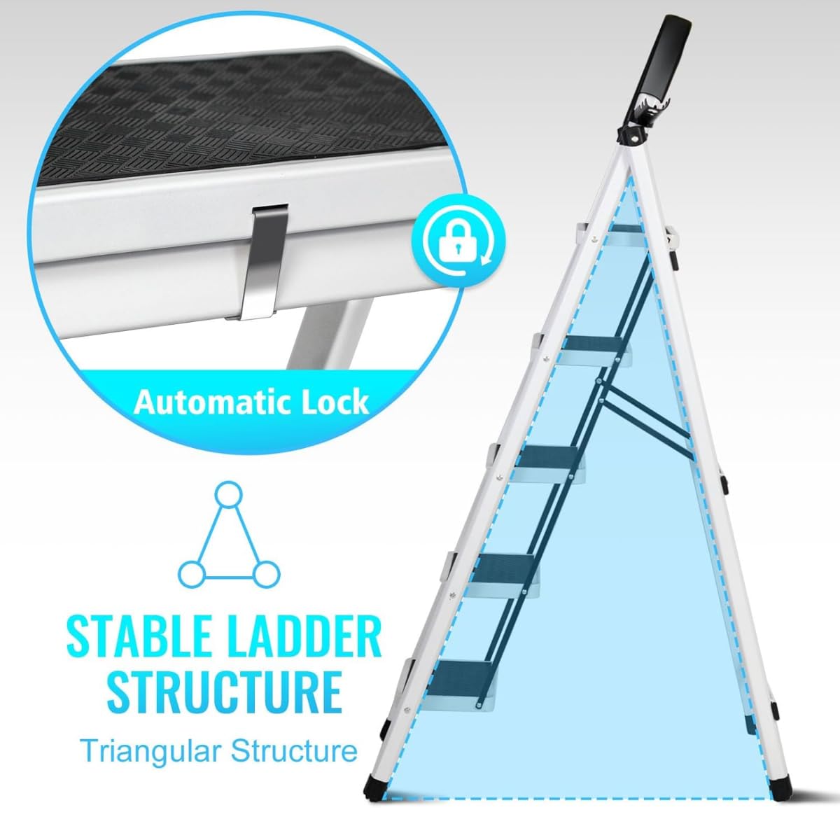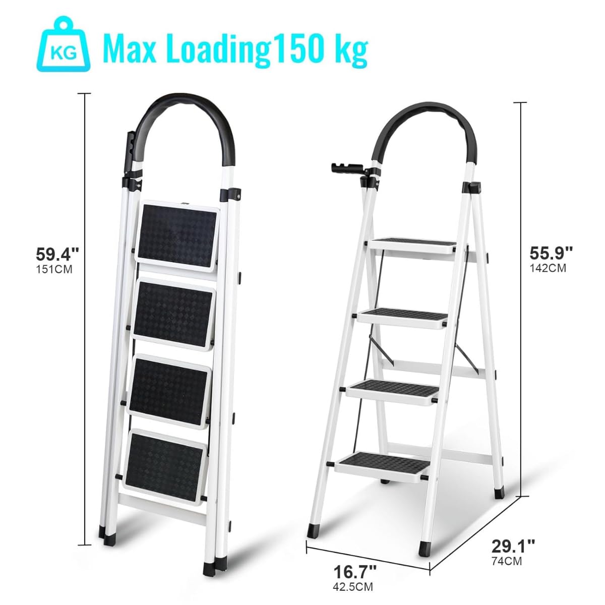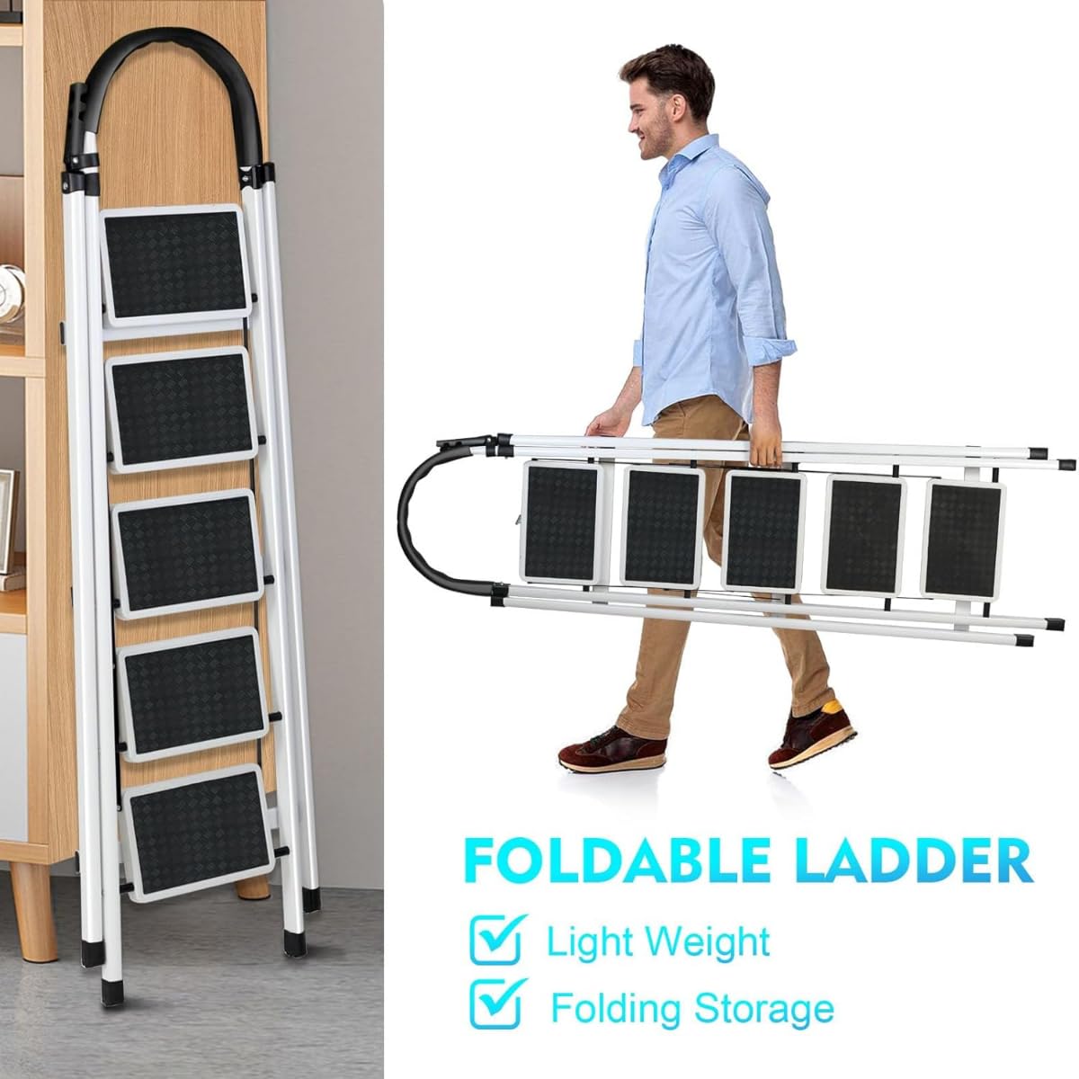 Built with durable steel frame and reinforced structure, this foldable ladder supports up to 330 lbs, ensuring maximum stability and safety during use.