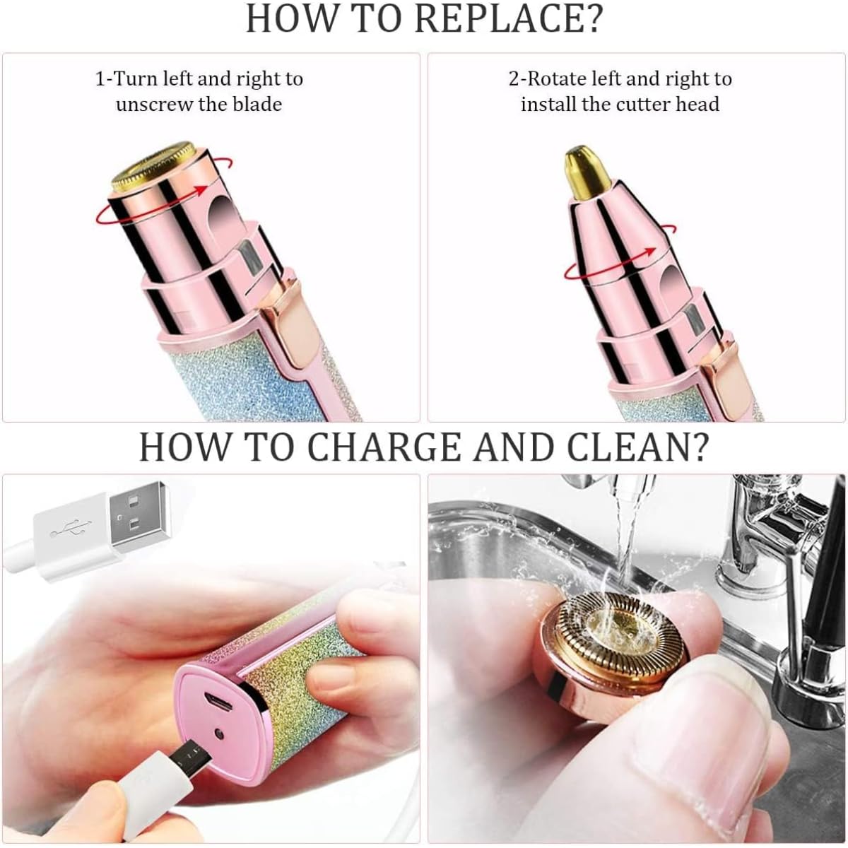 Portable & Stylish Design: Featuring a compact, lipstick-sized design with a sparkling finish, this 2-in-1 trimmer and shaver is perfect for on-the-go touch-ups, fitting easily into purses or travel bags.