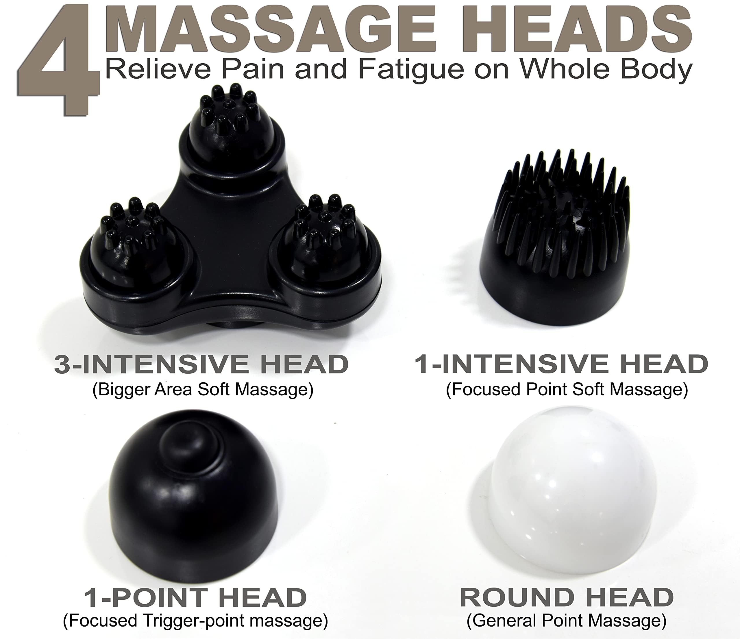 MULTIFUNCTIONAL MASSAGER- there are 4 interchangeable nodes to choose from for your back, foot, neck, shoulder, leg and body pain