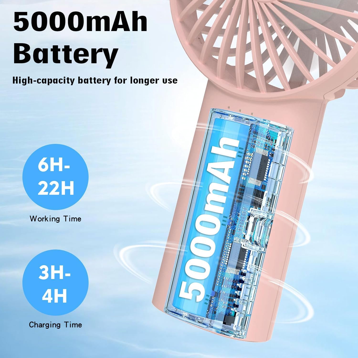 Gonaar Portable Mini Fan – 5000mAh Powerful Handheld Rechargeable Fan with Flashlight, 3 Speeds, USB Cute Design for Travel, Makeup & Eyelash Drying (Pink)