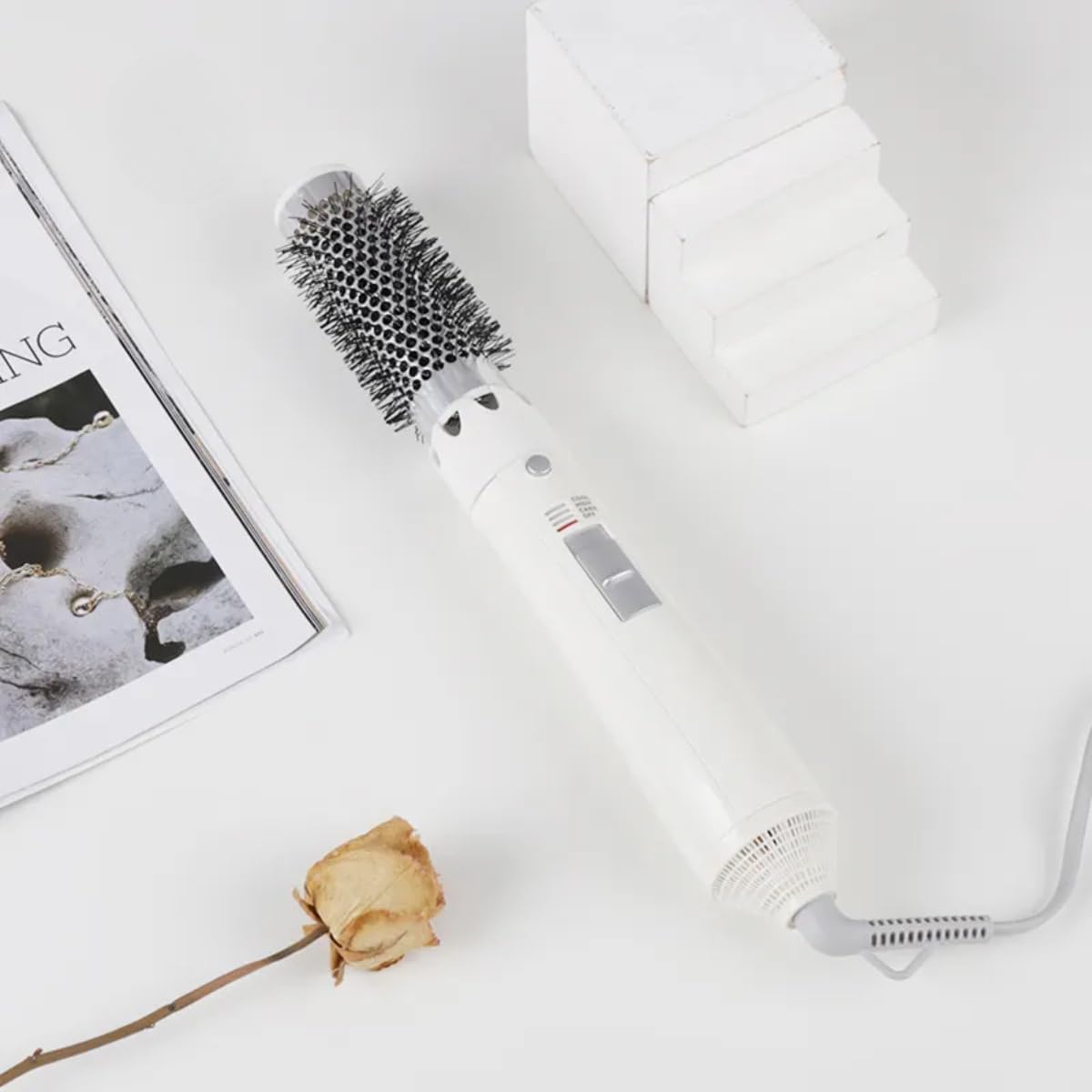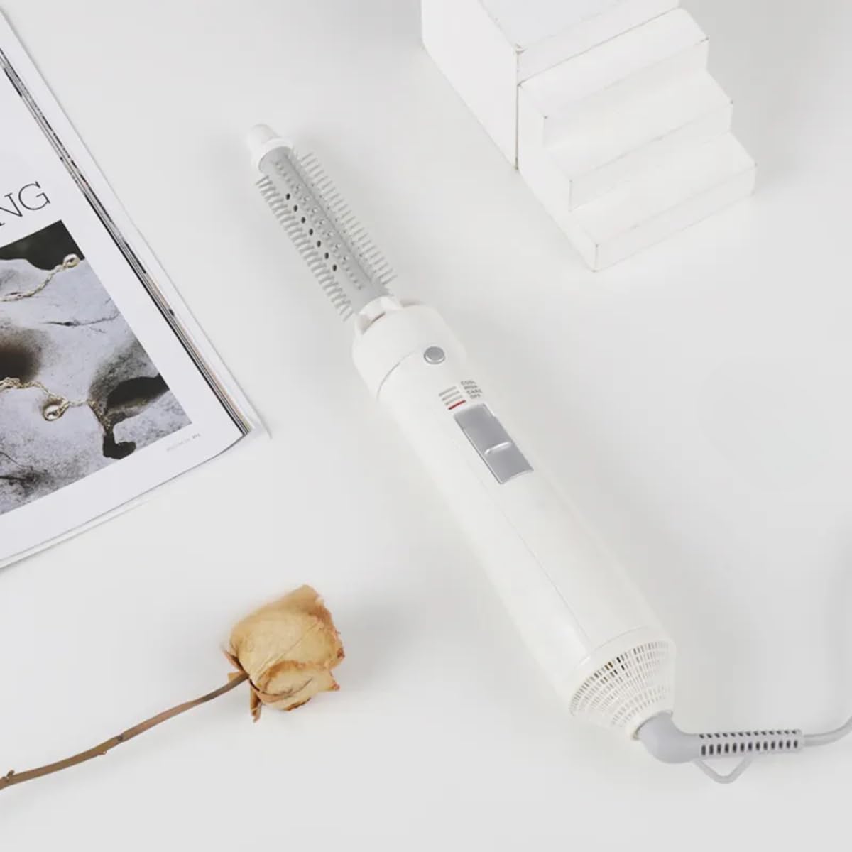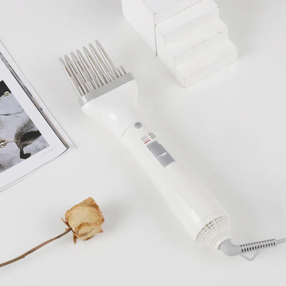 4-in-1 Hair Dryer & Volumizer: Combines a 1000W hair dryer, volumizer, curling iron, and straightening brush in one sleek tool, delivering versatile styling options for every hair type and length.